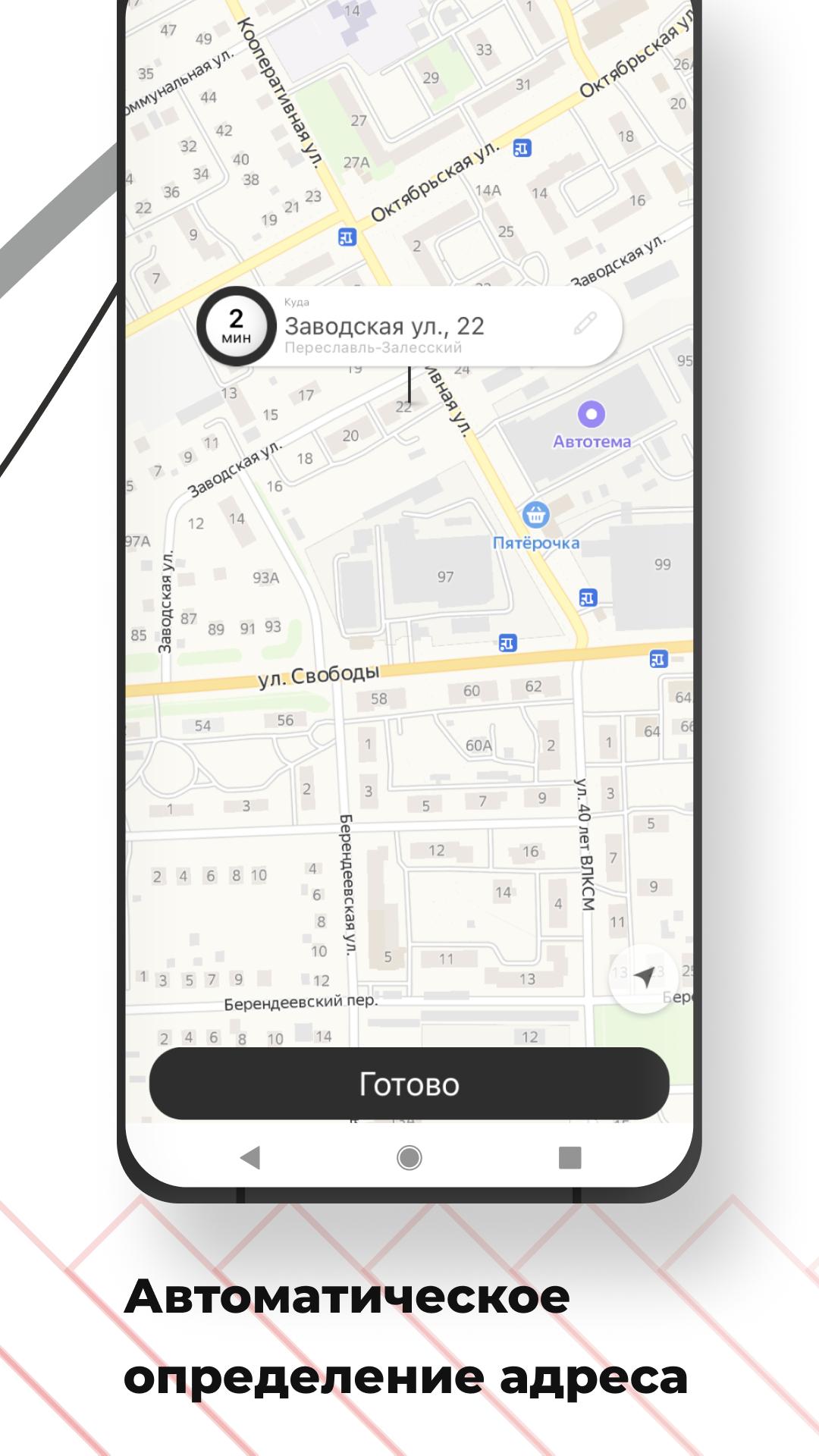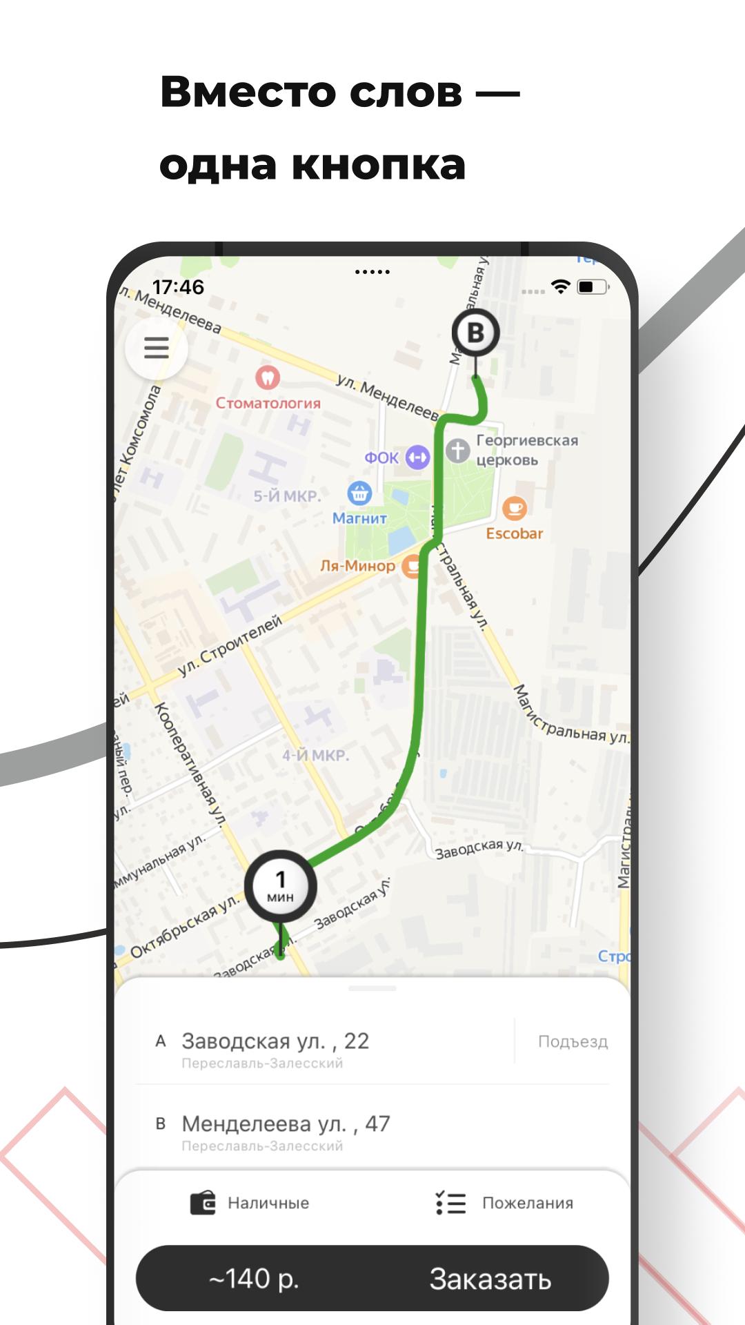 Order Green-eyed Taxi in the city of Pereslavl-Zalessky and in the Pereslavl region through the application. It's 3 times faster than by phone! Between the desire to get to the right place and the search for a car - a couple of seconds.