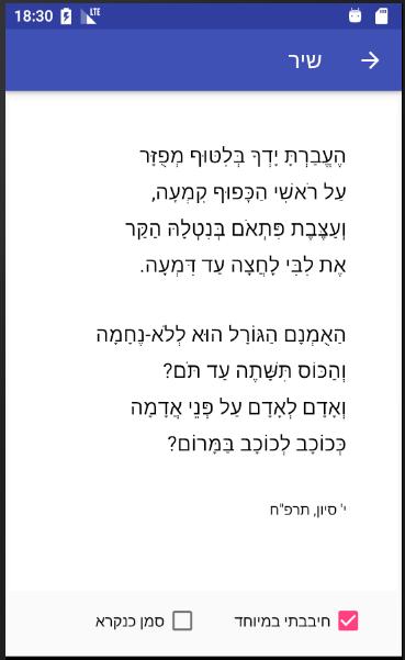 אפליקציה לצפיה בשירי רחל, תיוג שירים אהובים במיוחד, כולל אפשרות חיפוש בתוך השירים.Last updated on Oct 14, 2017