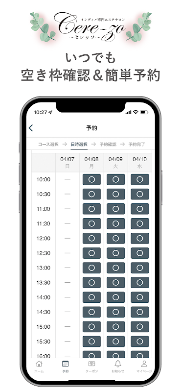 Through the app, you can receive the latest information and great deals from [Indiva specialty beauty salon Cere-zo]. You can also check the menu, your desired time slot, and make reservations from your smartphone at any time. By installing the app, you can use [Indiva specialty beauty salon Cere-zo ~Cerezo~] more conveniently and close to you.