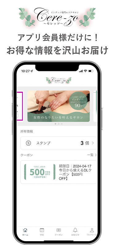 Discount coupons that can be used at the salon are issued and available through the app.