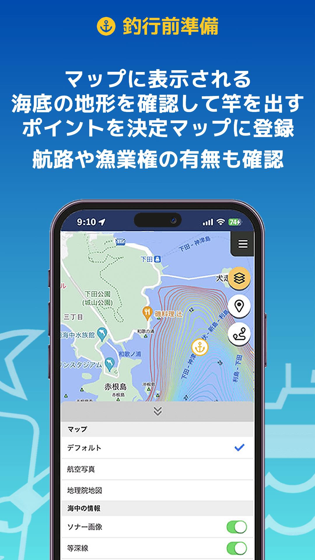 釣りナビくんNEXT 海底地図にポイント登録、GPSでナビ
