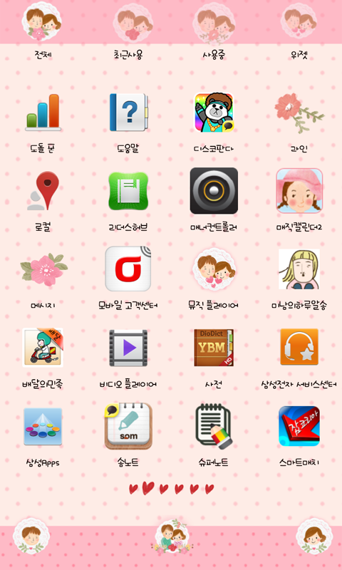 ♥ 테마를 적용하면 배경화면/아이콘/런처위젯이 모두 변신합니다! :D