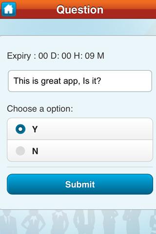 Imagine getting instant feedback from audience any big just for 1.99$. very useful in seminar, corporate environment or even friends.Share your poll questions on social network for friends to answers.