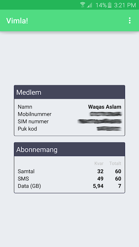 A community-user designed app for Swedish mobile network operator Vimla!