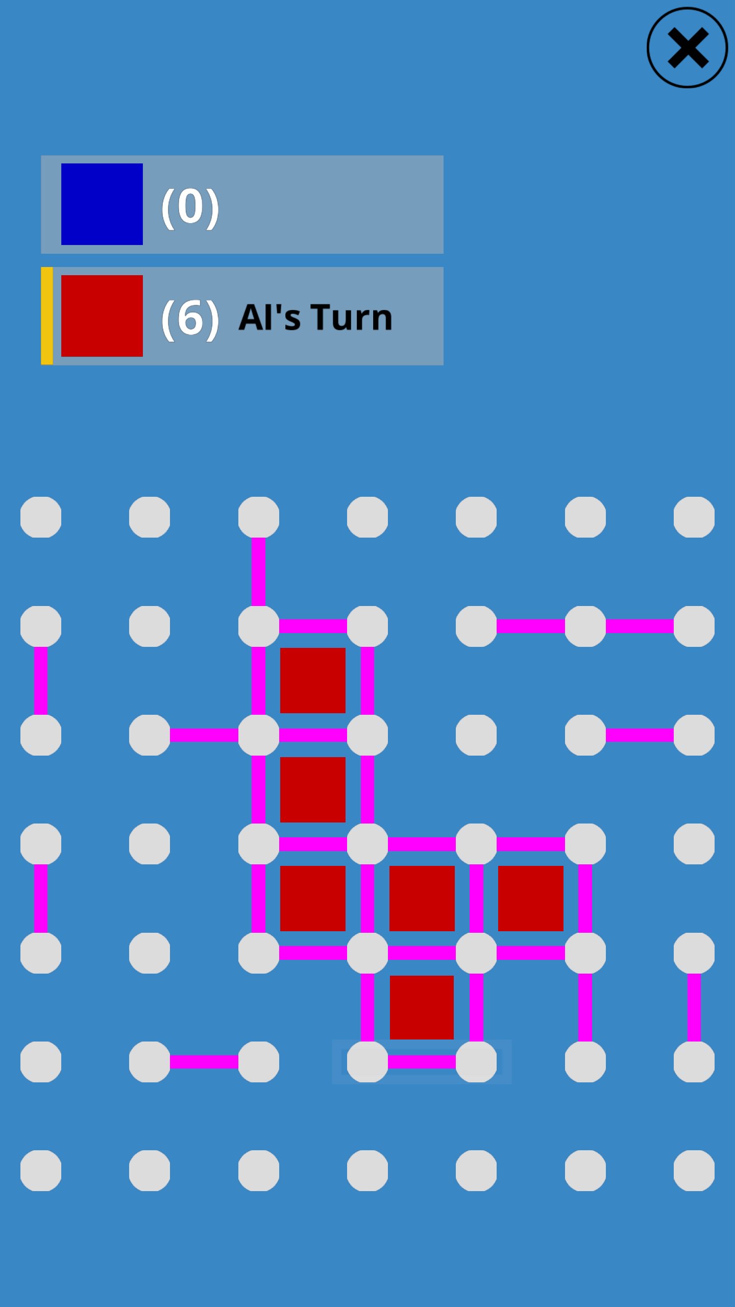 Click on the space between two adjacent dots to make a move.