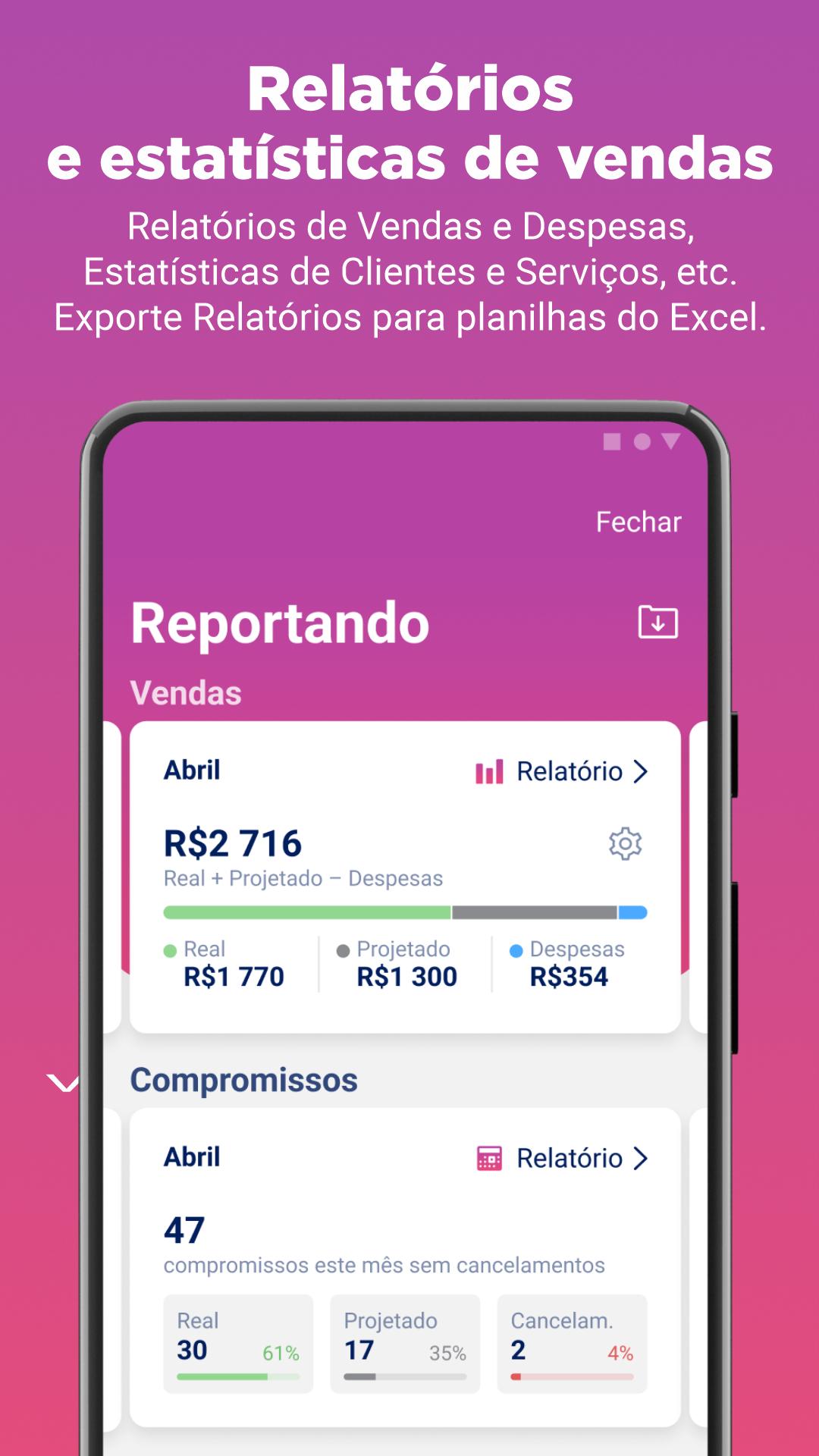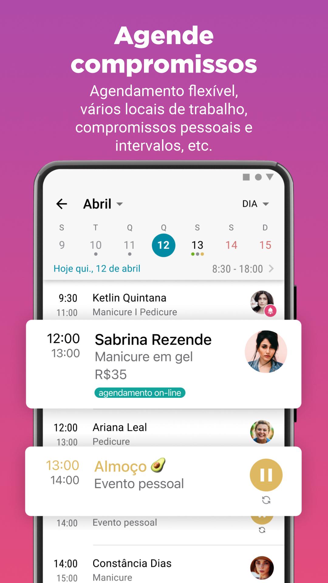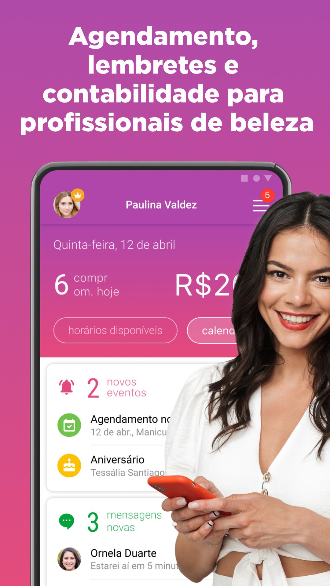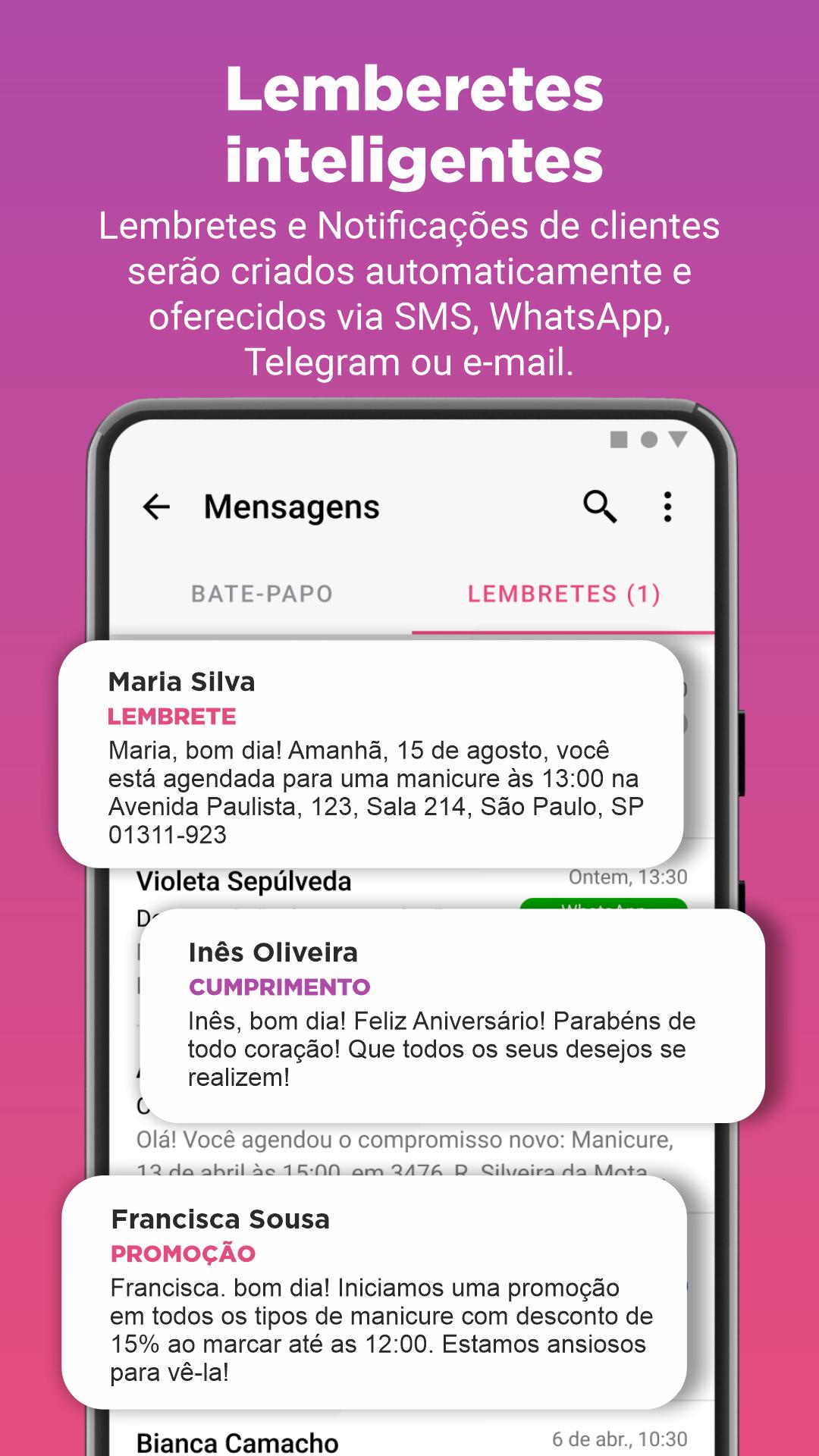 ● REDUCE CUSTOMER NON-SHOW PERCENTAGE with automatic notifications: set up reminders for a future meeting with a client and send notifications with a thank you or a reminder of new beauty services.