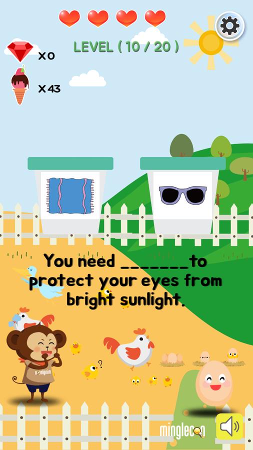 1. 滚动到英语音源的正确答案篮子。