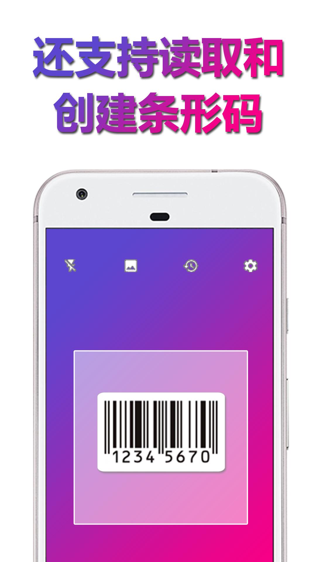 轻松扫描所有条形码格式。条形码阅读器支持缩放和曝光。
