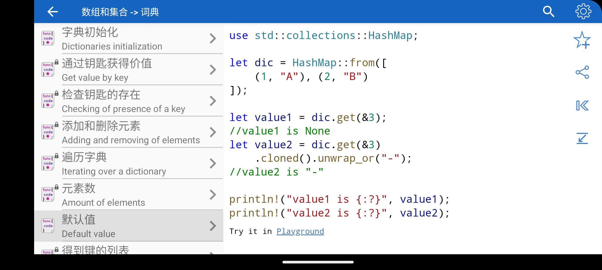 • 包含 Rust 中标准、常用操作的目录。