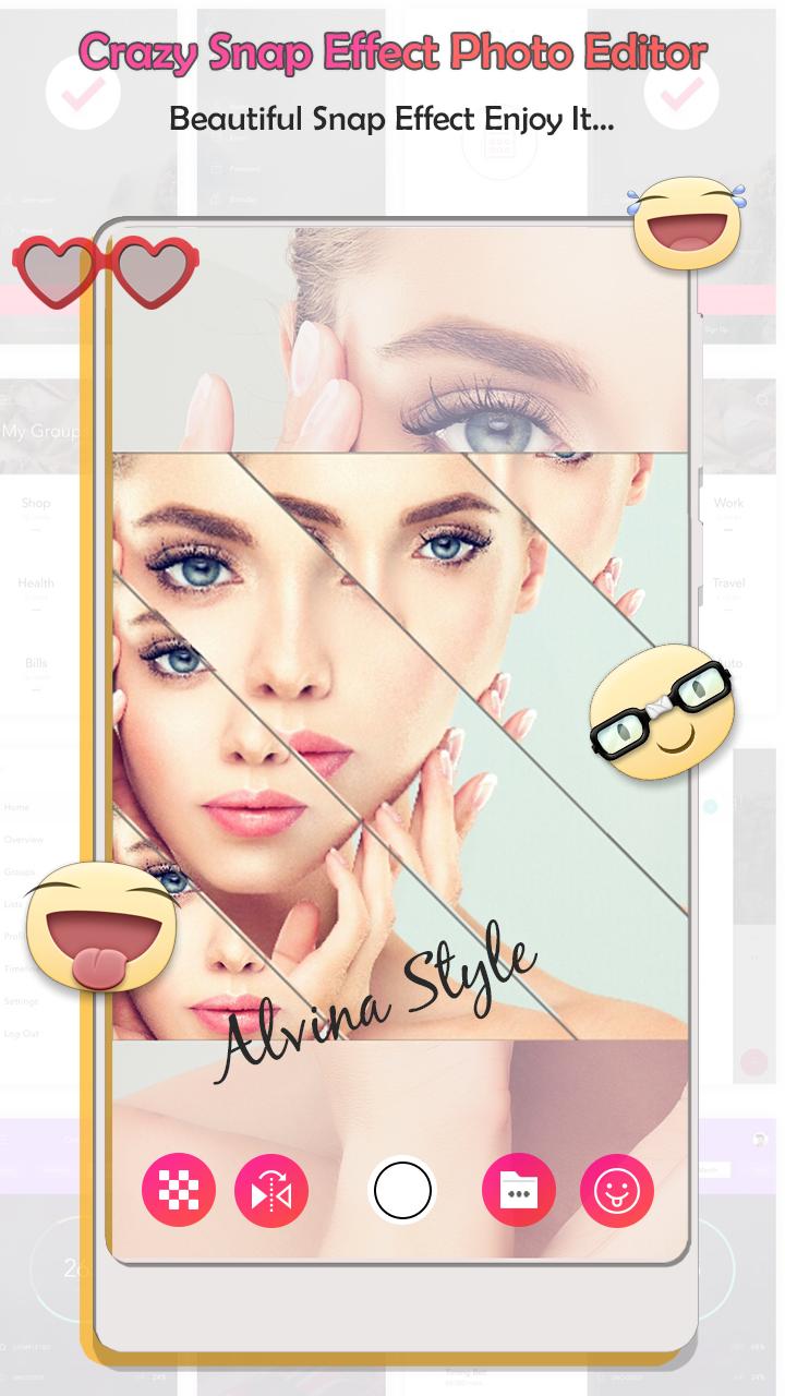 Crazy Snap Effect make wonderful photos with Snap Effects and Filters and get more likes and more followers by using this app! Because the stickers - emojis and filters you select are saved in the picture that you post they will be the same on Android Amazing snappy photo filters & stickers for your face for free and creative cool smiley filters and stickers & emojis to your photo with snap camera and Snap Effects and Filters!! Add smiley Photo Face filter - cute rabbit - fency eyes - tears - text - stickers and more..