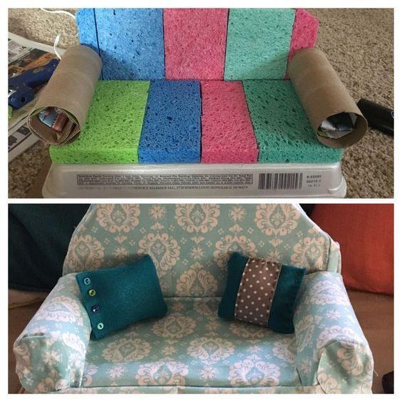 You will be surprised when you learn that doll furniture can be made from completely different scrap materials that everyone has at home: kitchen sponges, ice cream sticks, cardboard, paper, plastic cups and much more. There is no limit to your imagination