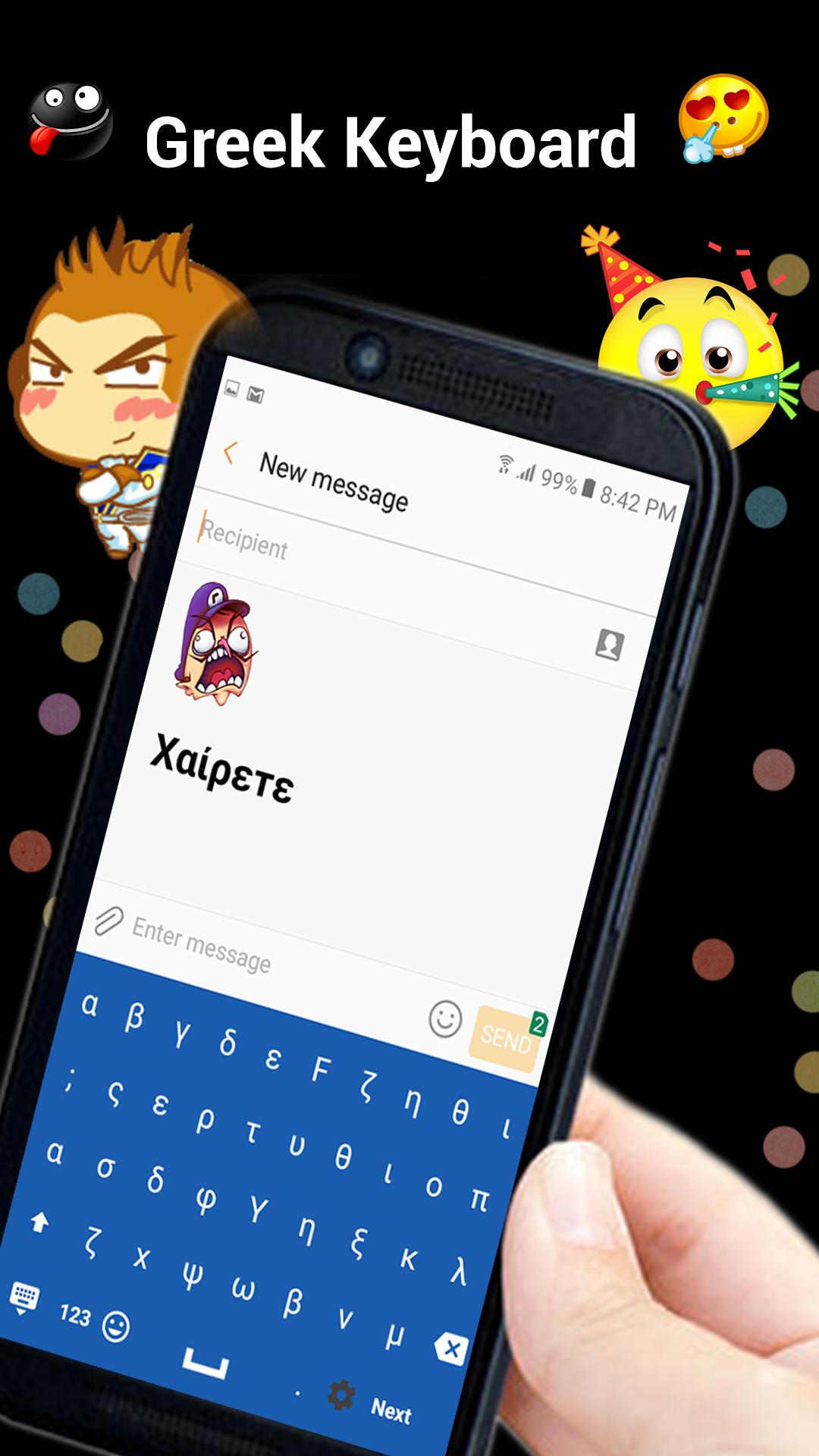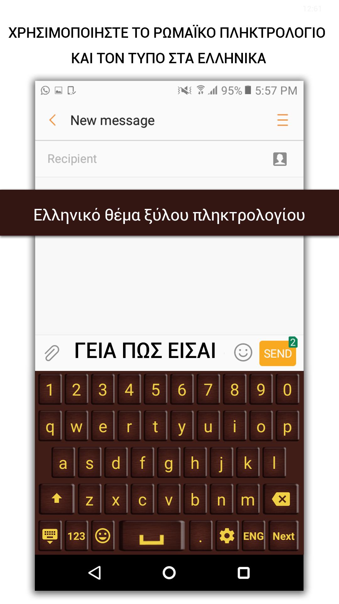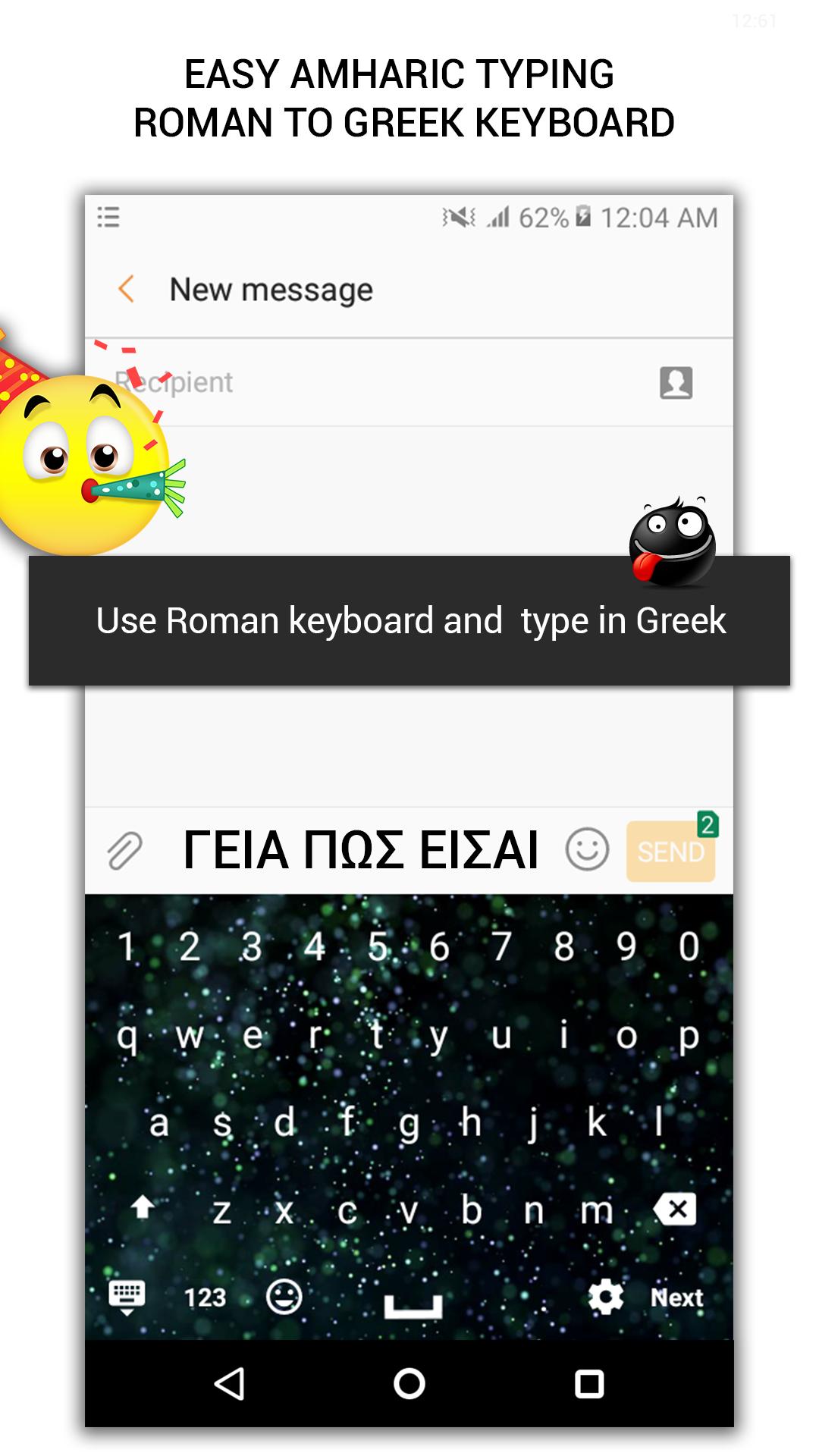 Easy Greek typing keyboard – A special keyboard for the Greeklovers who wan to use Greek through default English keyboard. Now you can chat on social media . Its easy to use and not necessary to change keyboard setting of keyboard. You write in Roman and easy Greek keyboard change in to Greek . You can also choose keyboard themes which you like most. You can also buy your best theme.