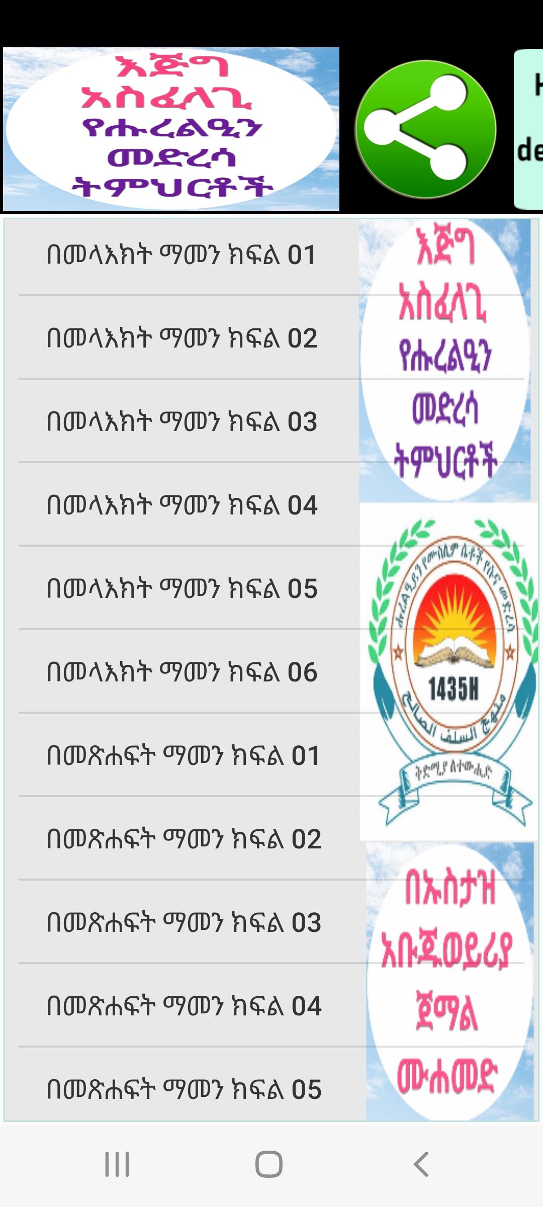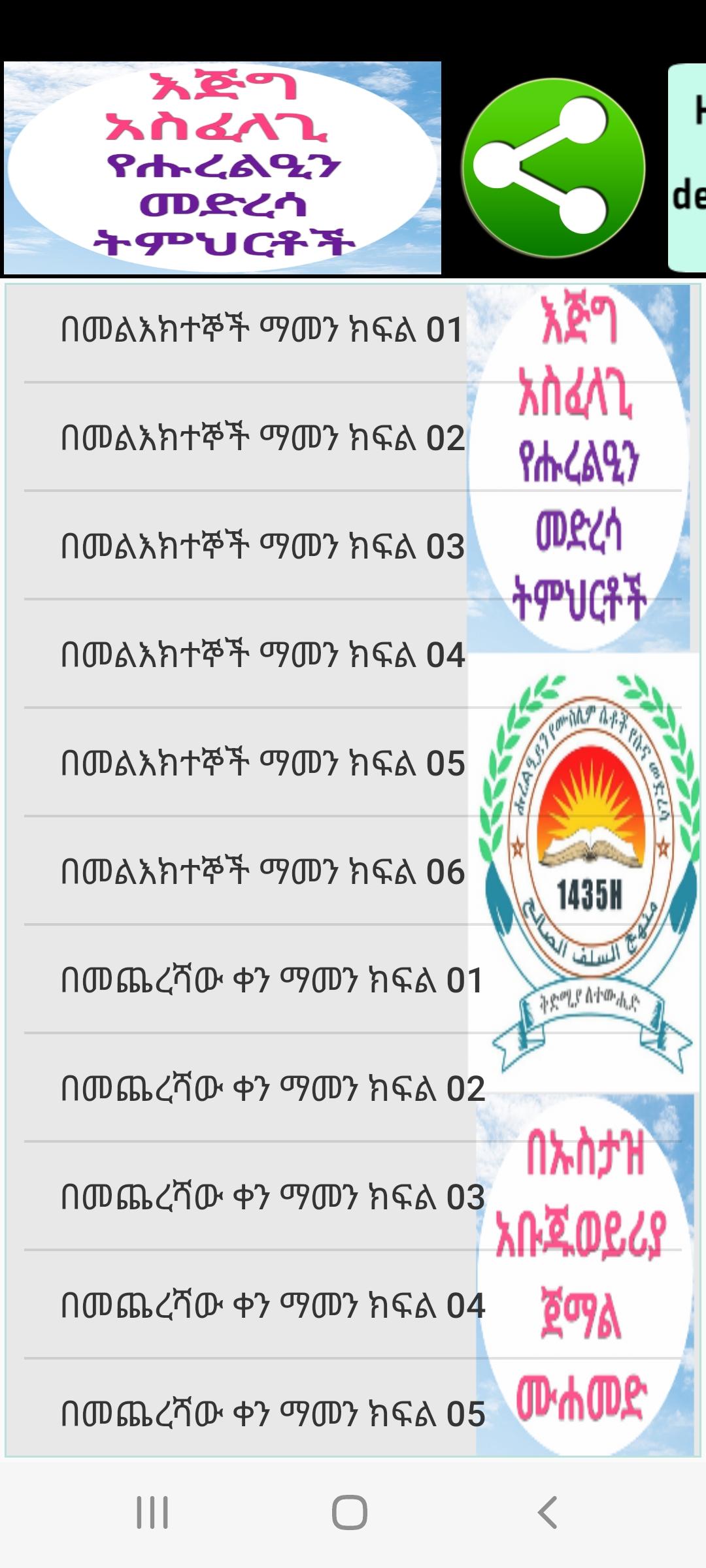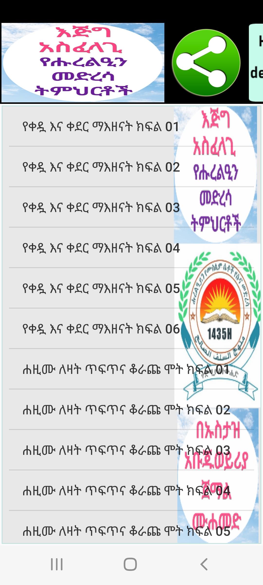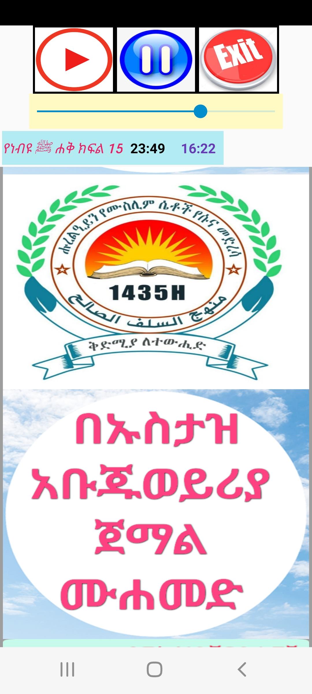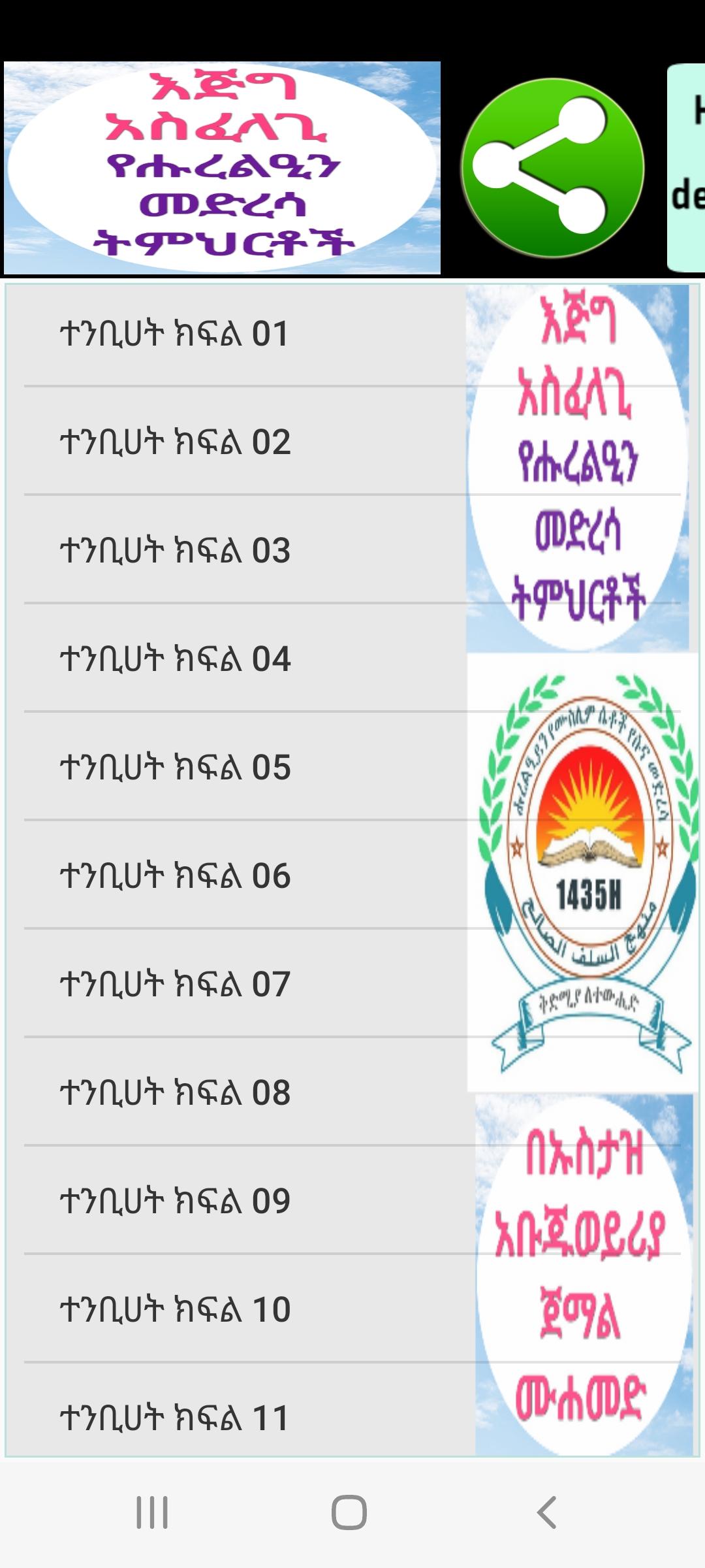- Esta aplicación está diseñada de una manera tan hermosa por el Dr. Hussain Umar, también preparamos lecciones de Corán, lecciones de Hadith y aplicaciones de tafsir por pedido. Puede comunicarse con nosotros en este número de teléfono 251912767238.