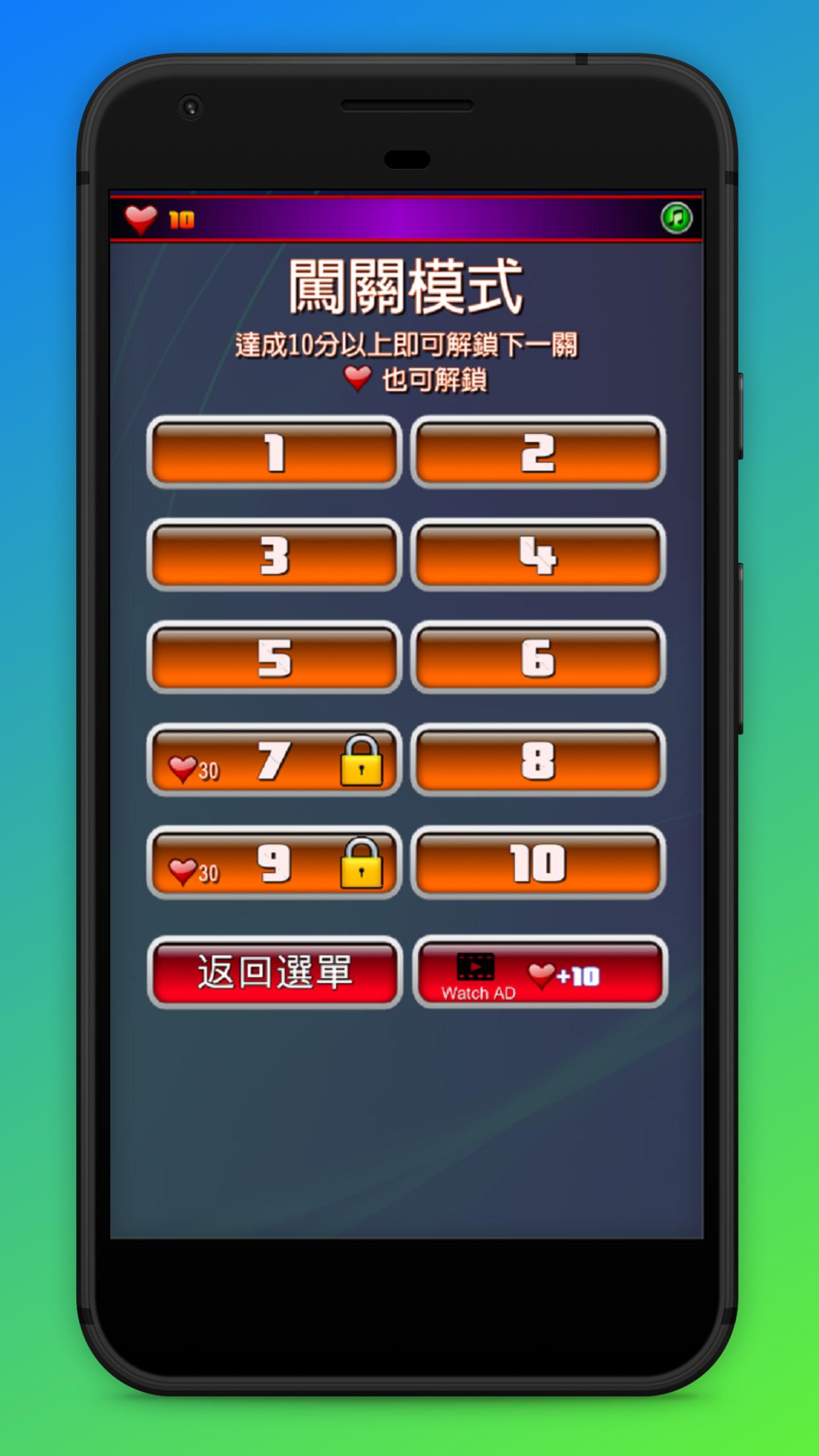 Cómo jugar 1: juega en un solo jugador, 10 segundos por ronda, crea un récord personal de mayor éxito