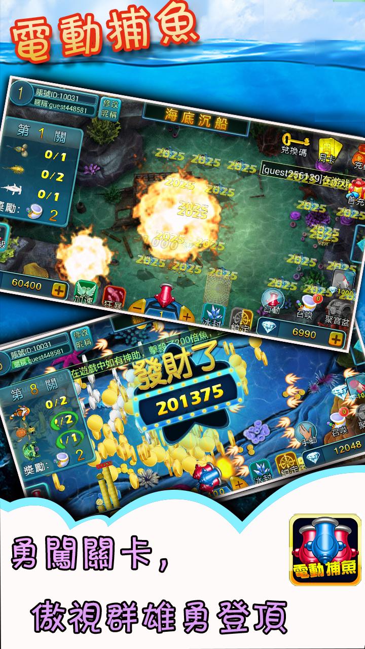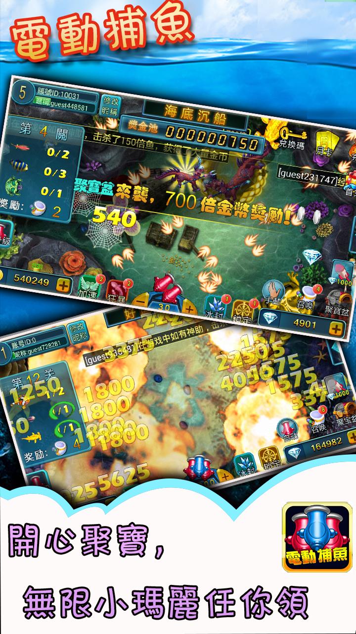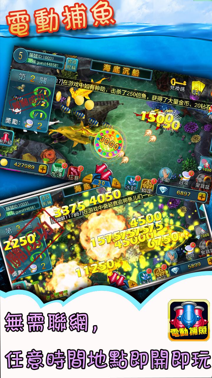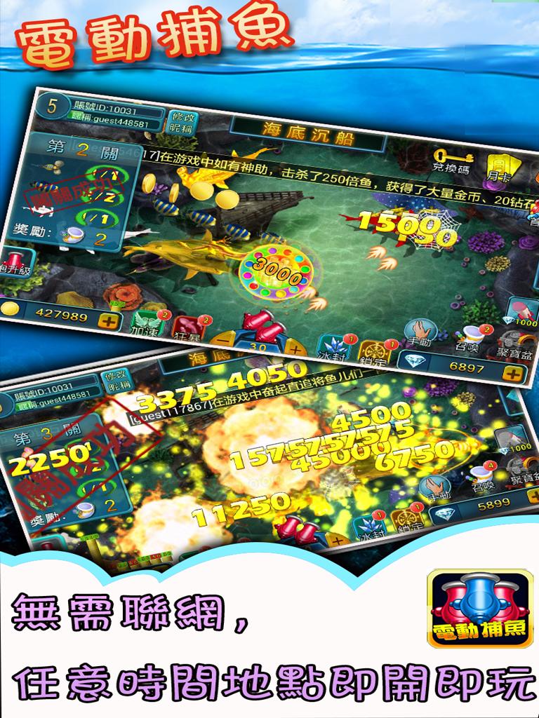 在手指間感受緊張刺激的捕魚釣魚電魚打魚快感! 3D製作精美的魚兒,完美呈現真實的打魚游戲《電動捕魚》!