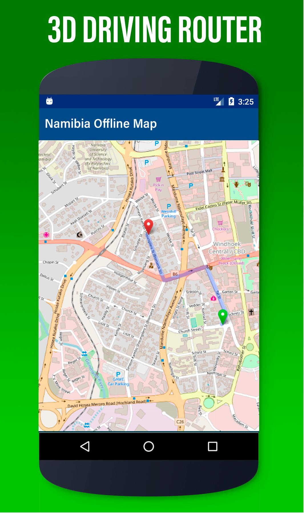 Tambien puedes encontrar la ubicación y ruta más eficiente para llegar a tu destino. Accese a Descarga mapa interactivo de Namibia y gps satelital gratis para celular, luego los puedes usar todo el tiempo sin necesidad de tener wifi.