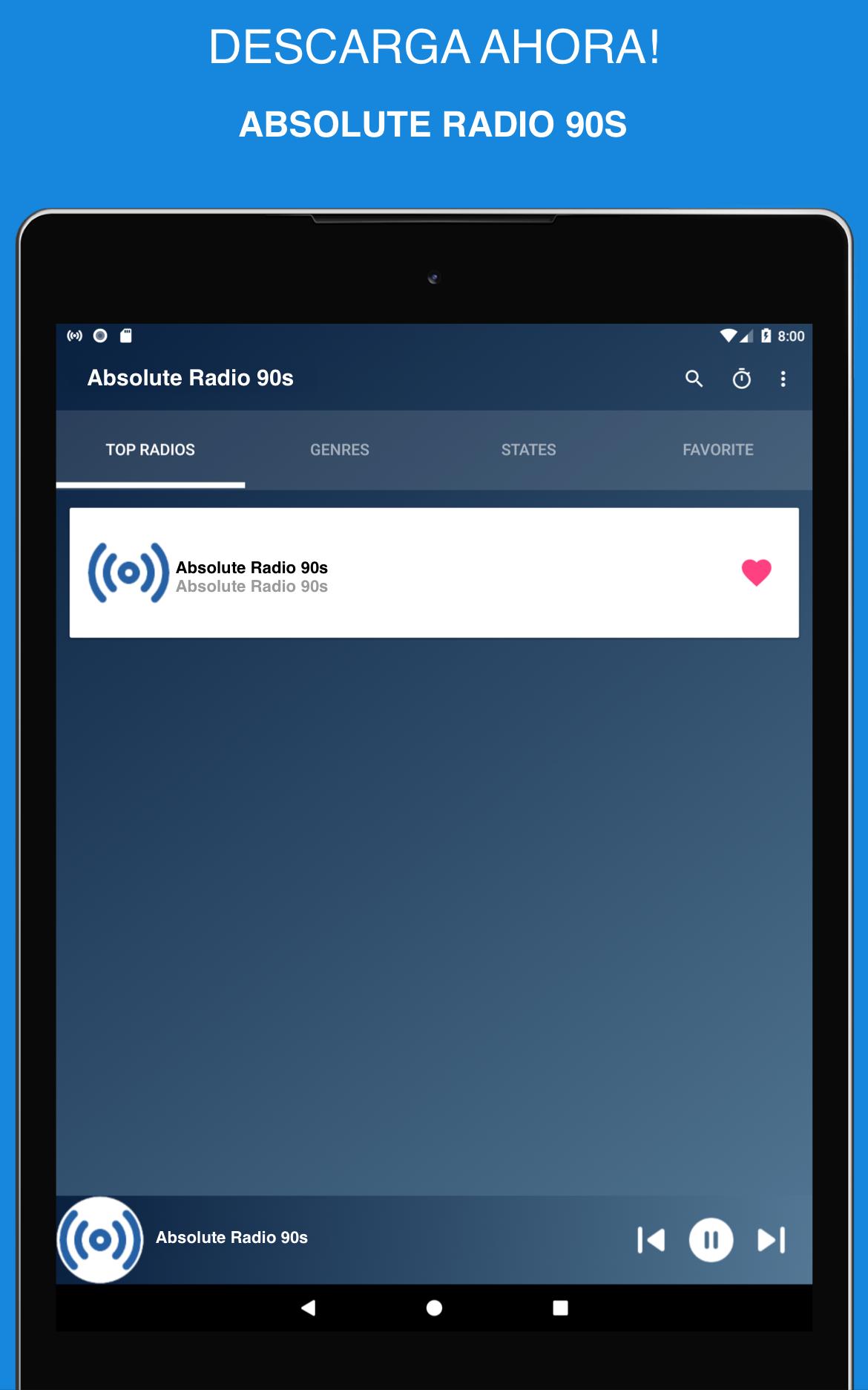 Manténgase conectado con las ultimas noticias y la mejor música 🎵 Absolute Radio 90s App UK Free es una aplicación de radio en línea con las estaciones más escuchadas en el Reino Unido y todos los éxitos de sus géneros musicales favoritos, ¡ahora siempre tendrá las últimas noticias, los resultados de los partidos de fútbol y las transmisiones de radio fm en vivo! ¡Absolute Radio 90s App UK Free es la aplicación de radio en vivo en la que encontrarás todas las noticias de última hora que suceden en UK. ¡Totalmente gratis!