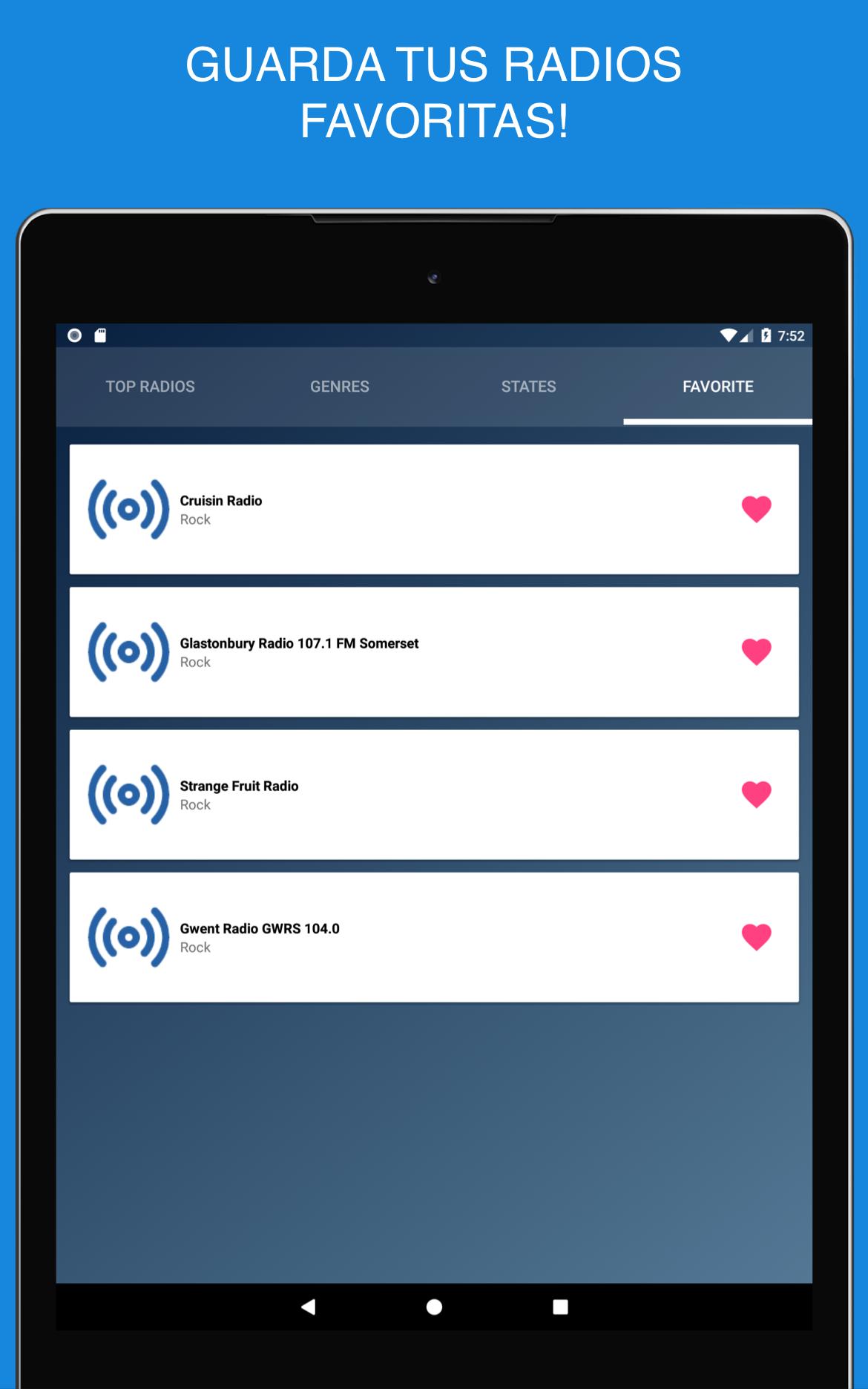 Navegue rápidamente por esta Radio App y busque por genero la estación que desea escuchar.