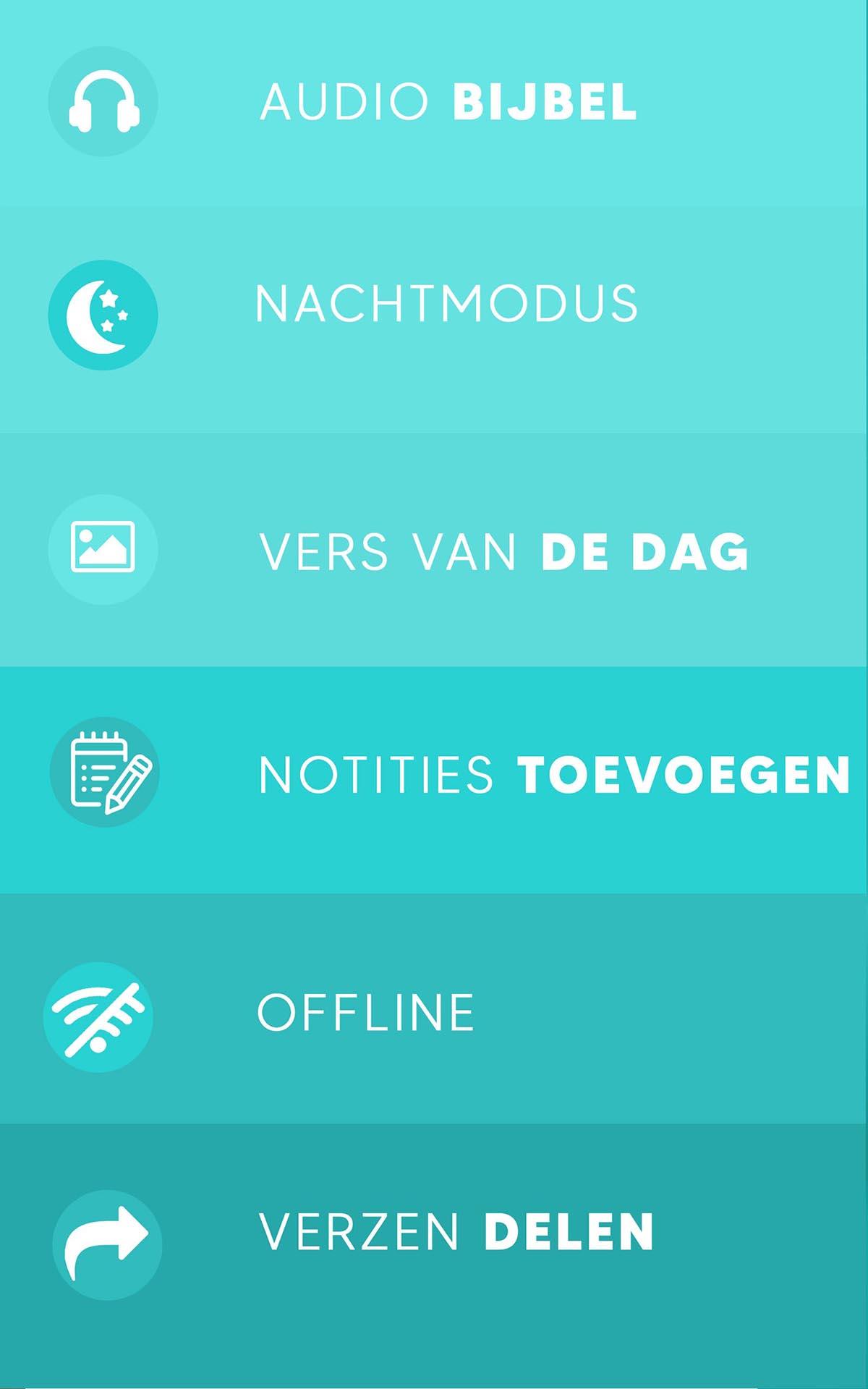 Esta aplicación de la Biblia le proporciona la versión holandesa de la Biblia (DSV Statenvertaling biblia 1619) y le permite acceder a los versículos completos sin conexión.