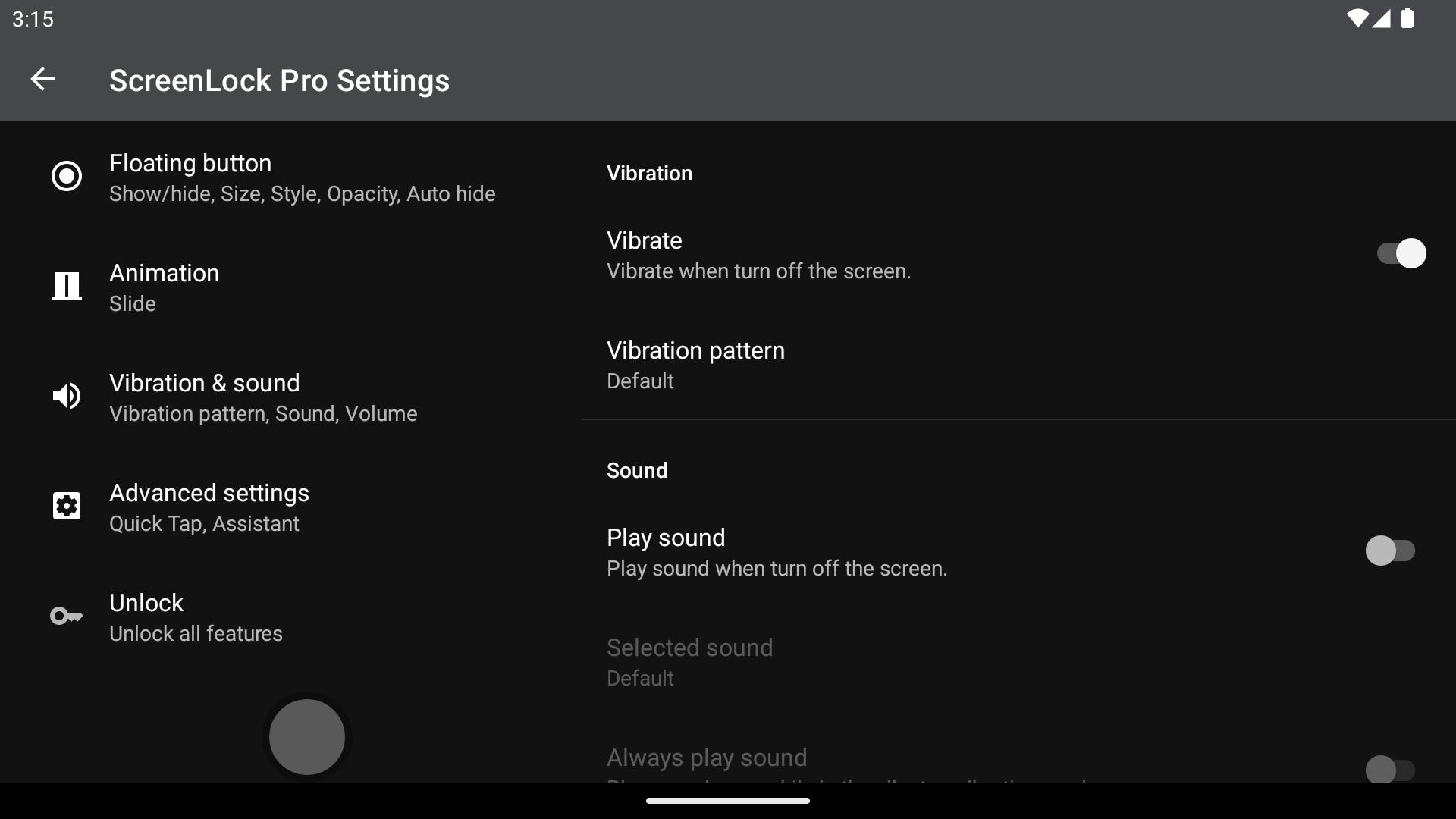 ScreenLock Pro te permite apagar la pantalla con un solo toque en el botón de encendido flotante.