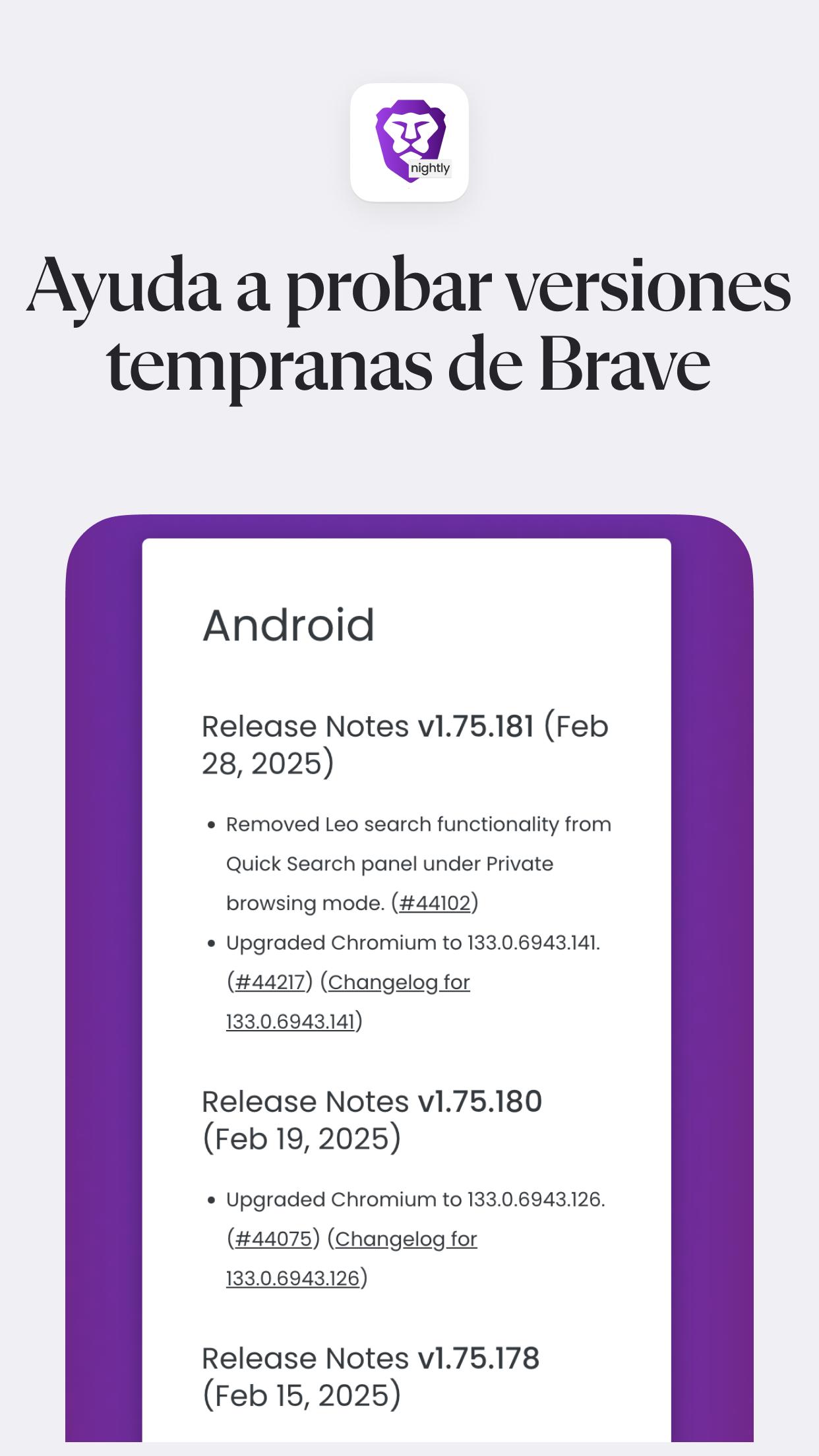 Obtener Brave Nightly versión histórica en Android