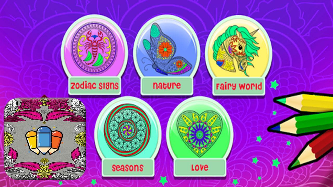 We present a relaxing coloring for adults. One application is for parents and children. Everyone can find something interesting. There are many categories of colorations: