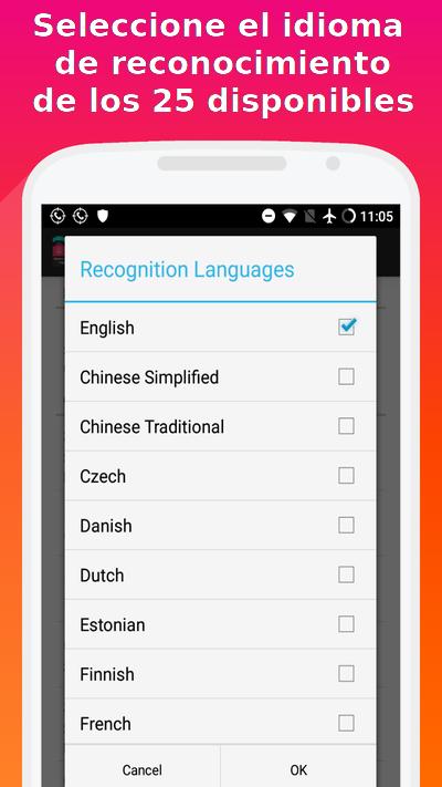 Idiomas de reconocimiento admitidos: