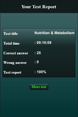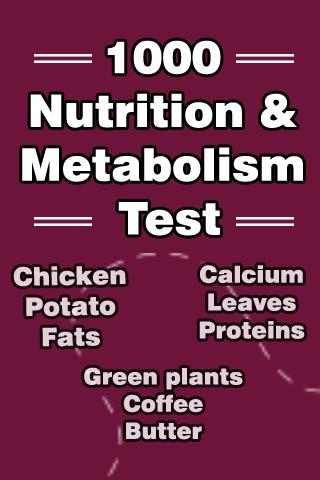 This App contains 1,000 questions. This Nutrition and Metabolism test is the best way to improve your Nutrition and Metabolism knowledge. This Nutrition and Metabolism test app is perfect for lower, intermediate and upper levels.