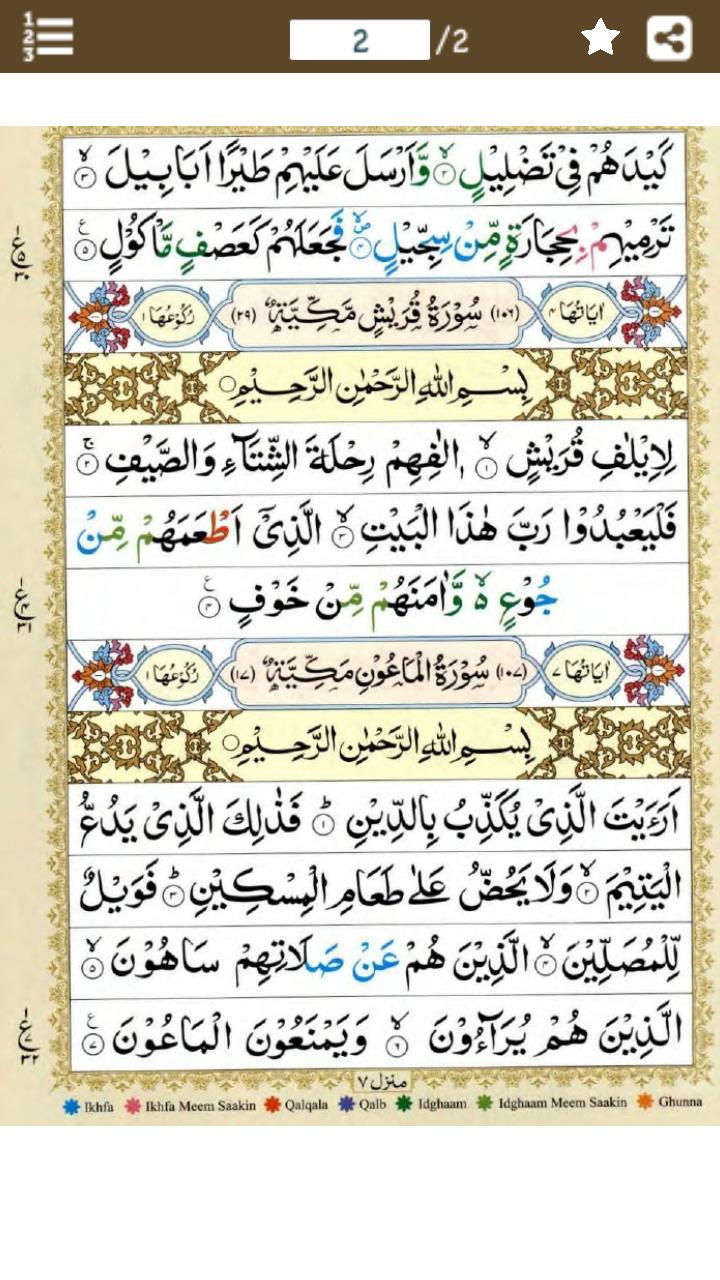 المصحف المعلم جزء 30 سورة قـــريش ترتيب السورة فى المصحف (106) عدد آياتها (4)