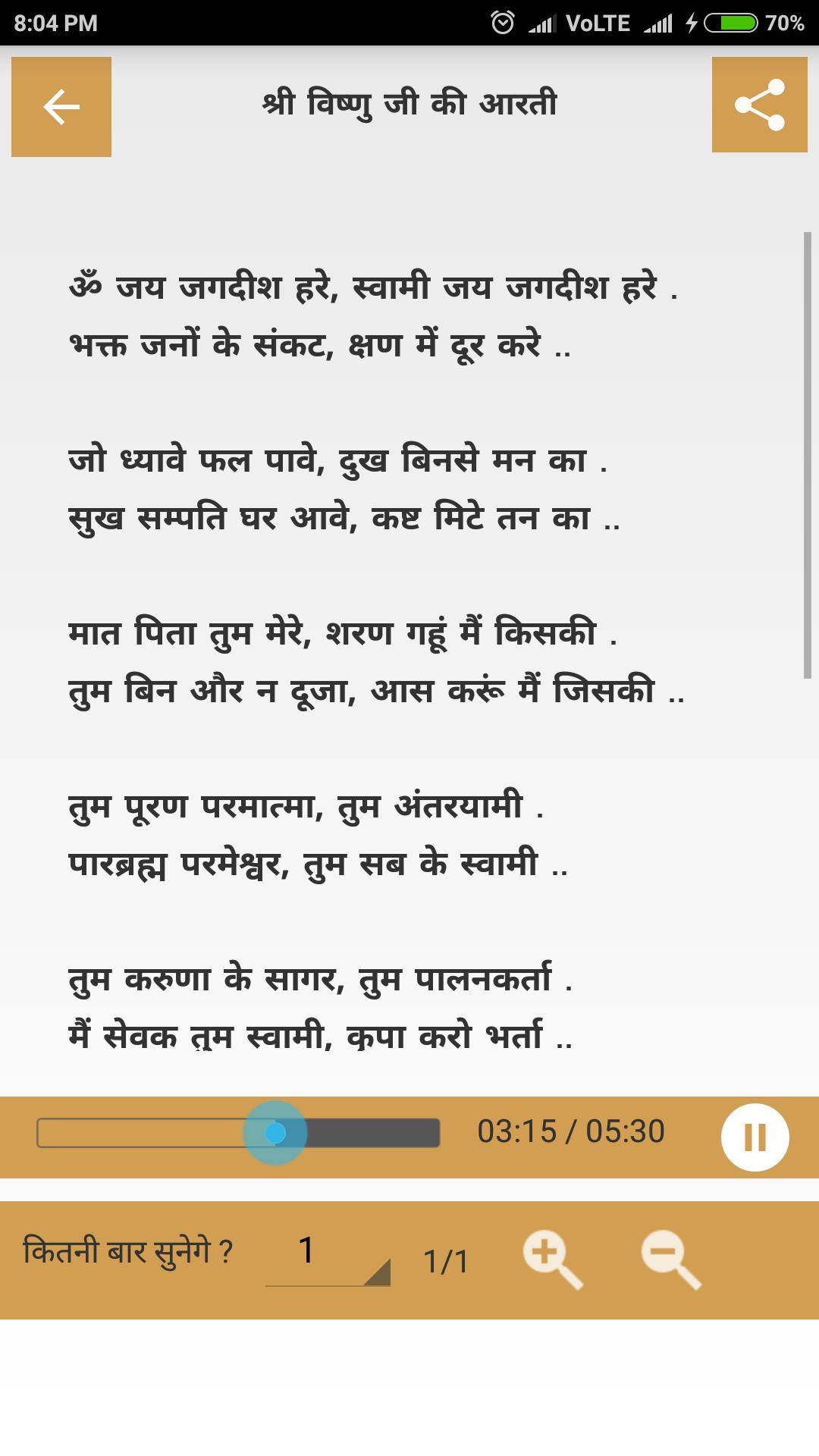 • Repeat option to allow you to play the bhajan multiple times.