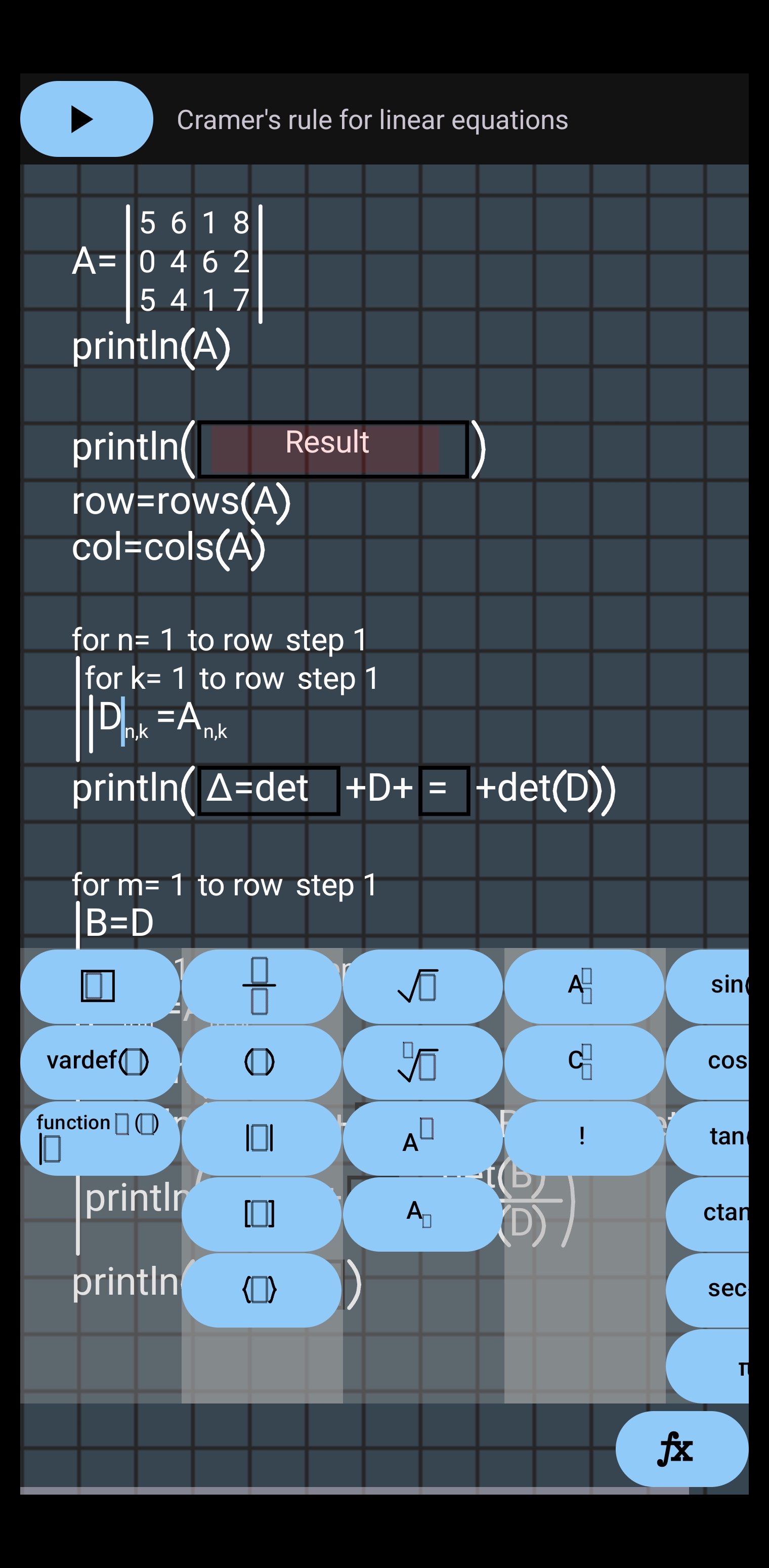 با استفاده از این برنامه می توانید الگوریتم هایی برای حل مشکلات بنویسید. می توانید از عبارات با اعداد پیچیده ، ماتریس و متغیر استفاده کنید.