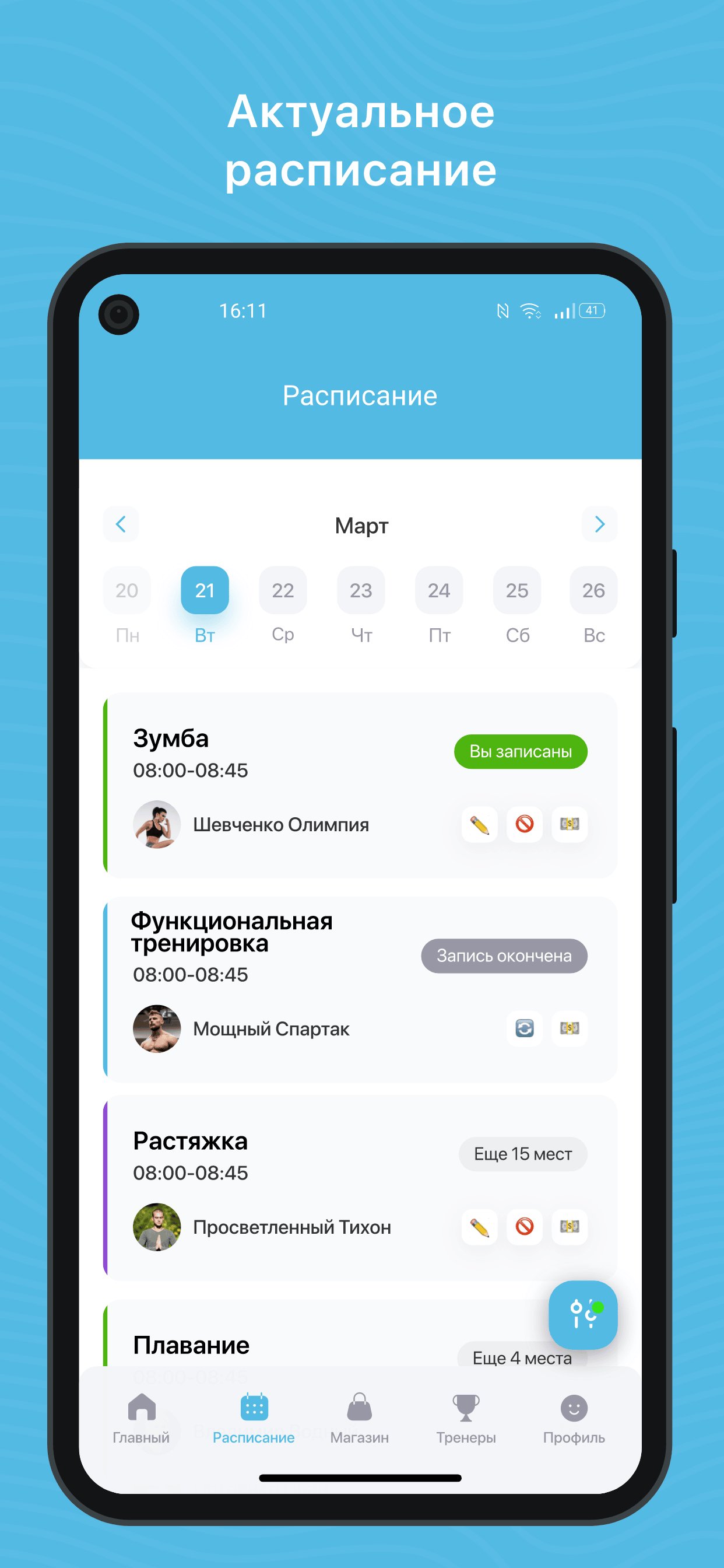 Mobile application for clients of fitness clubs and sports studios