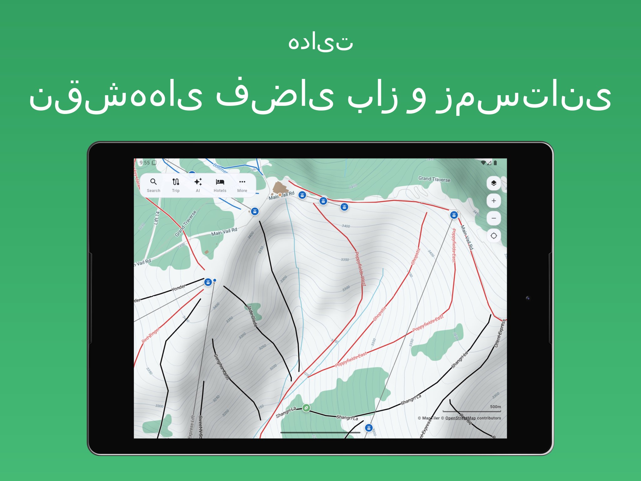 از میان نقشههای مختلف سفر، از جمله نقشههای فضای باز، نقشههای زمستانی مناسب برای اسکی و نقشههای ماهوارهای انتخاب کنید.