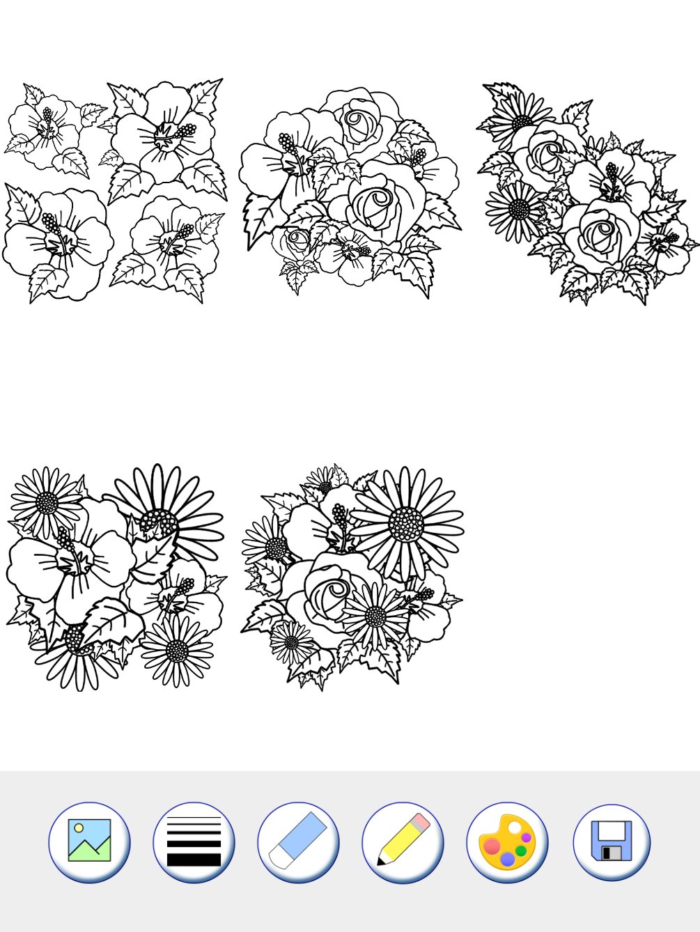 A great coloring application, pictures of flowers to paint!