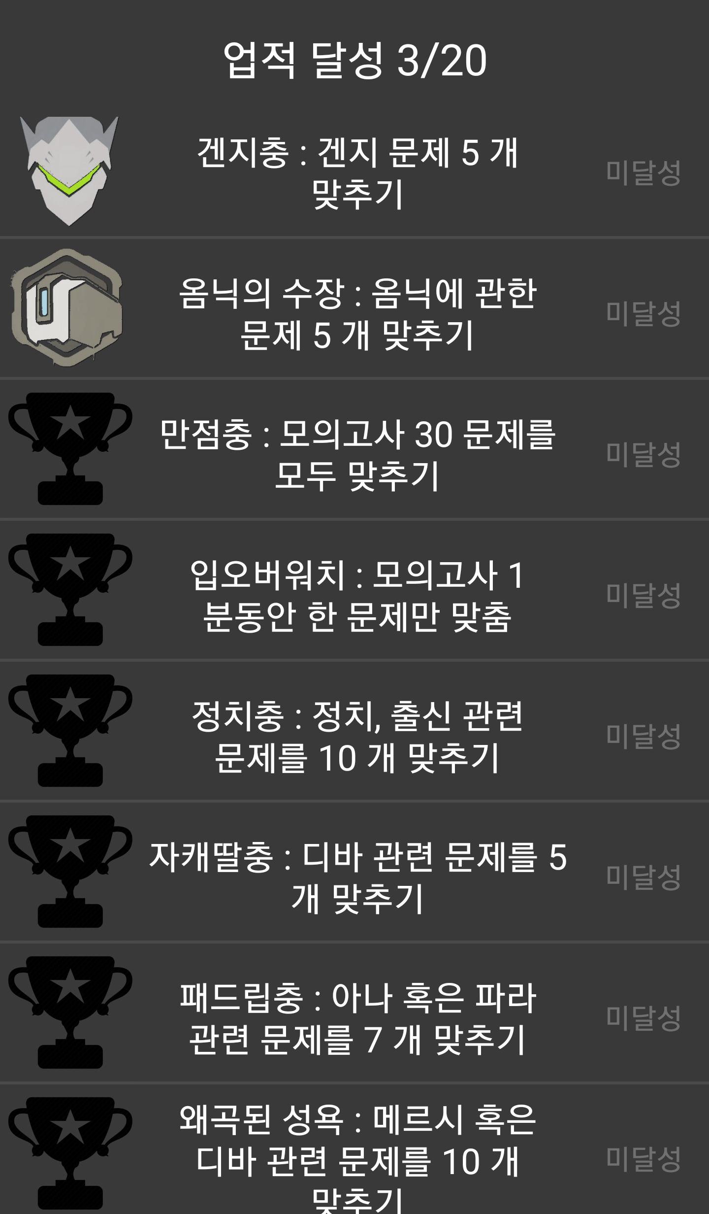총 20가지의 업적들도 클리어해보세요~.~!