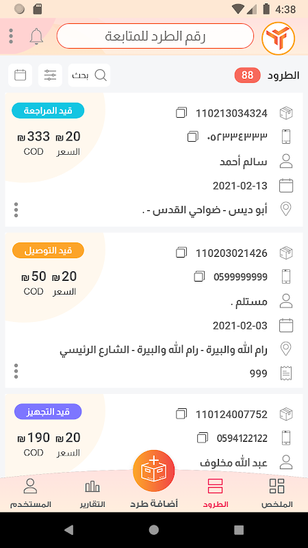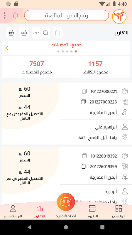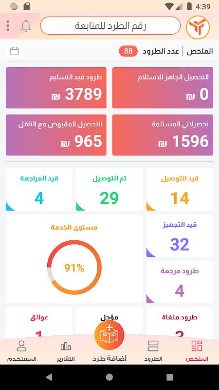 يتيح التطبيق لزبائن الشركة إدارة ومتابعة الطرود الخاصة بهم من لحظة اضافتها على النظام ولغاية تسليمها، بالإضافة لإدارة ومتابعة التحصيلات المالية وحالاتها لتسهيل متابعتها مع الشركة.