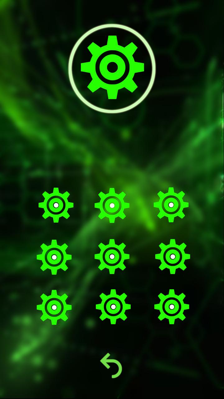 ◎ Cool green technology lock screen theme with dark green vert futuristic high tech HD live wallpaper secures your phone.