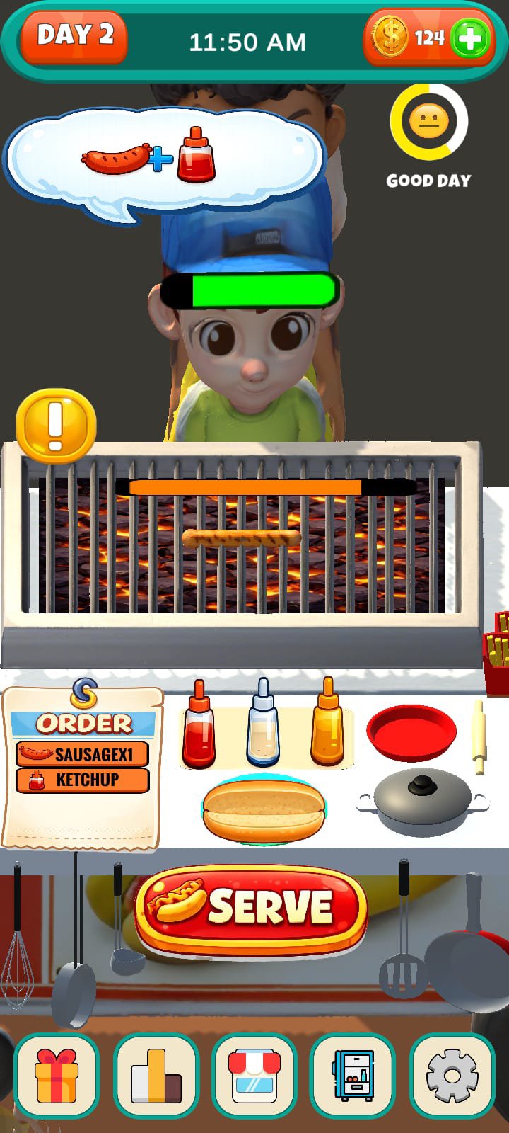 Hotdog Simulator – Cook, Sell & Grow Your Idle Food Tycoon is the ultimate cooking simulator and idle tycoon game. Cook delicious hotdogs, serve hungry customers, and grow your own food business step by step. Start with a small hotdog stand and turn it into a profitable food tycoon empire by grilling sausages, preparing tasty hotdogs, and selling fast to earn money even while you’re idle.
