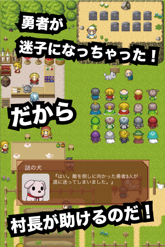 Village head was supposed to go to help the hero that lost to went to defeat the monsters in a village! Really, what can be safely help? Free RPG puzzle app.