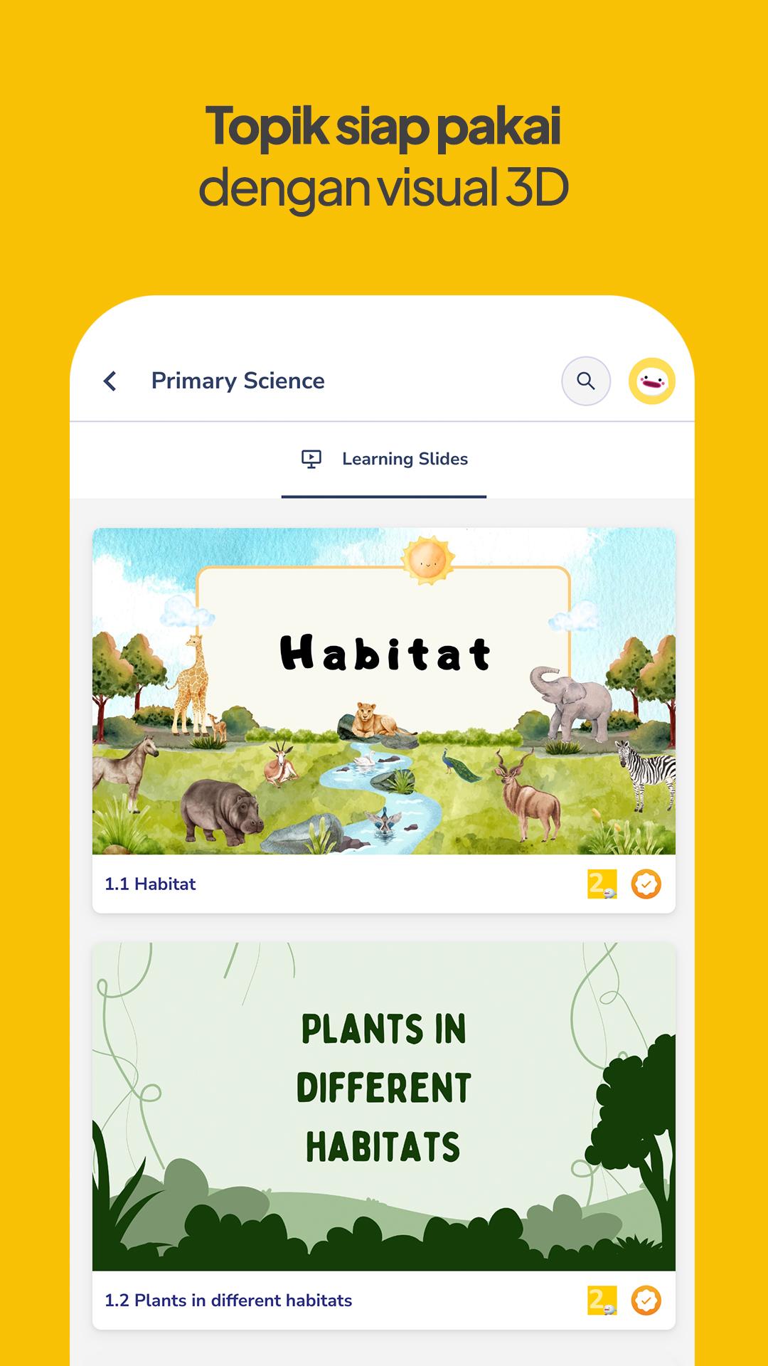 Lengkap dengan visual 3D yang ciamik, temukan slide presentasi interaktif siap pakai untuk TK, SD, SMP, sampai SMA. Persiapan jadi lebih cepat dan gampang, untuk semua mata pelajaran!