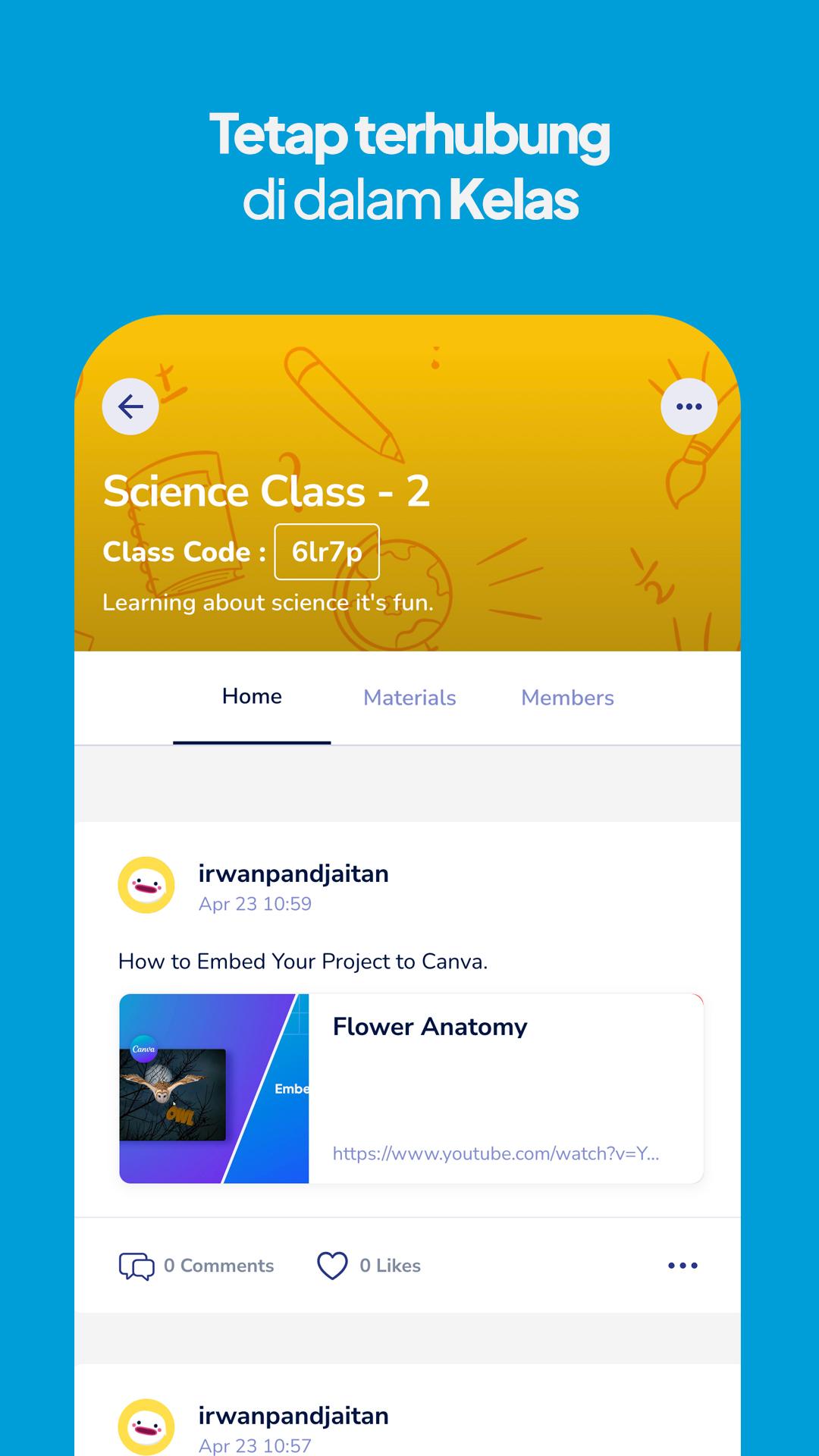 Buat kelas virtual untuk Anda dan siswa agar tetap terhubung dengan mudah. Bagikan proyek, bahan ajar, topik, dan informasi terbaru dalam satu tempat. Ruang kelas tanpa batas!