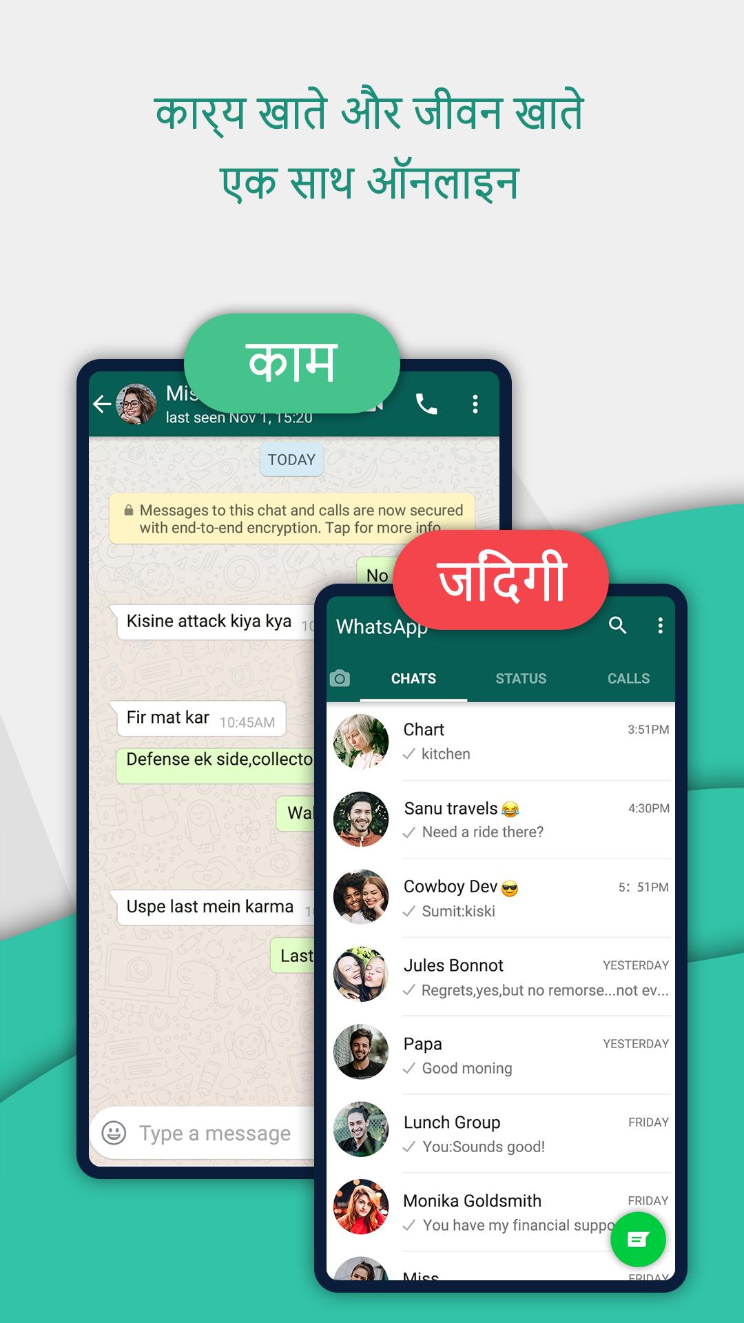 एक ही समय में कई खाते ऑनलाइन होते हैं, जैसे कि एकाधिक WhatsApp, एक कार्य व्यवसाय के लिए और एक जीवन चैट के लिए।