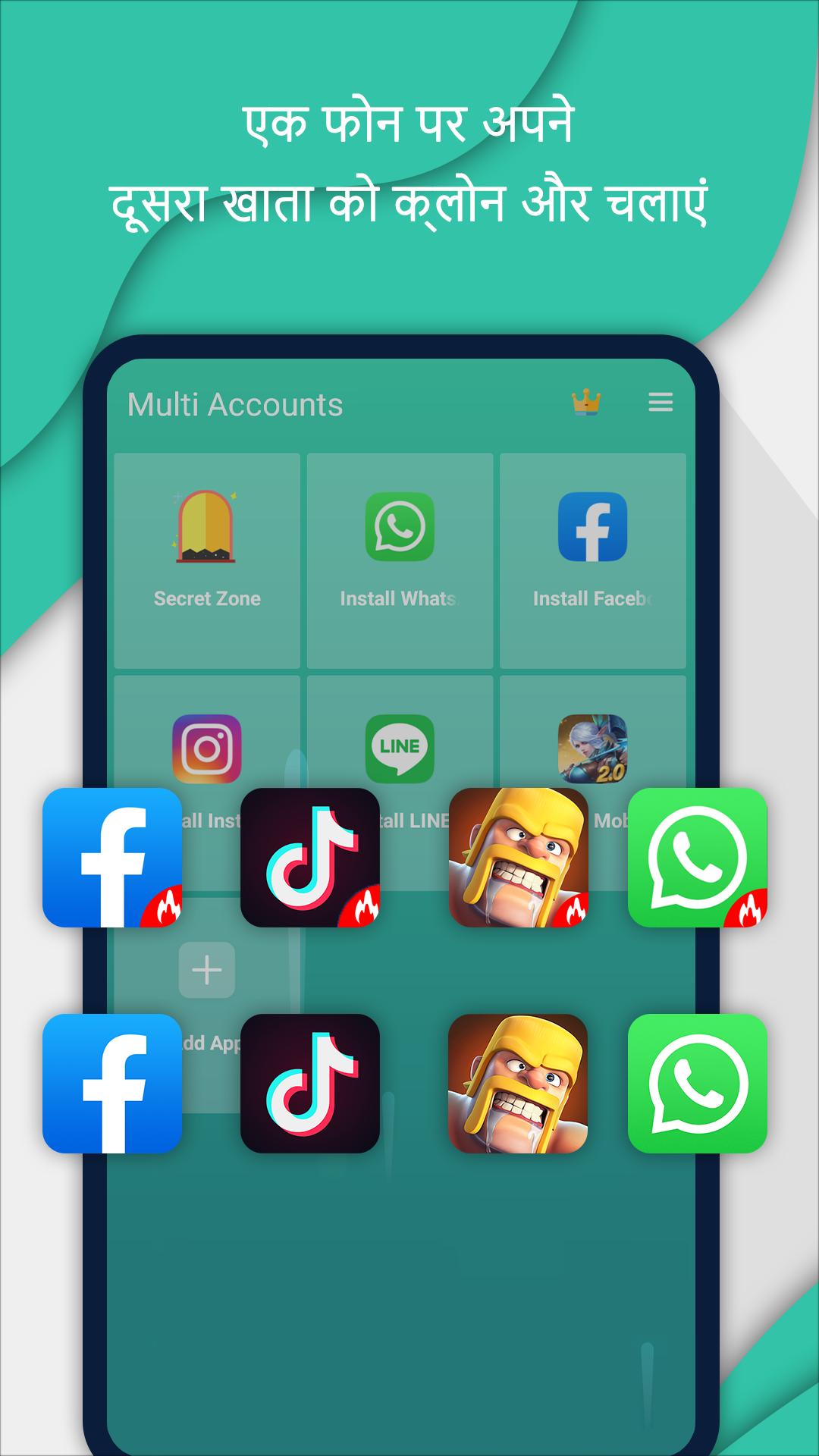 • एक ही समय में एक फोन पर कई खातों में लॉग इन करें, ऐप्स खाते और गेम खाते समर्थित हैं।