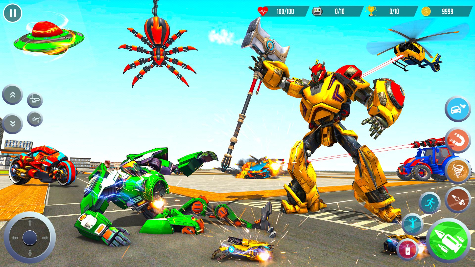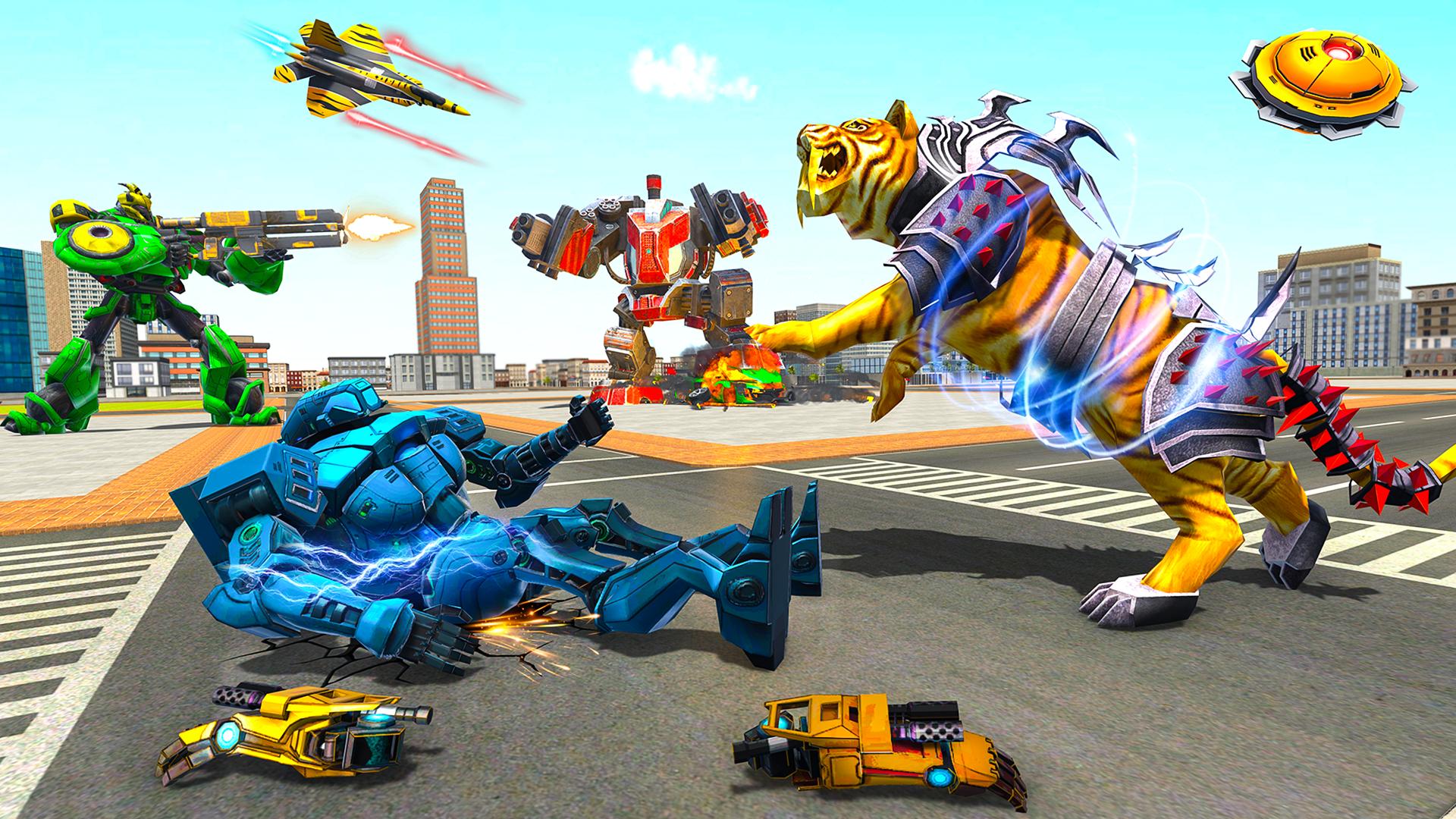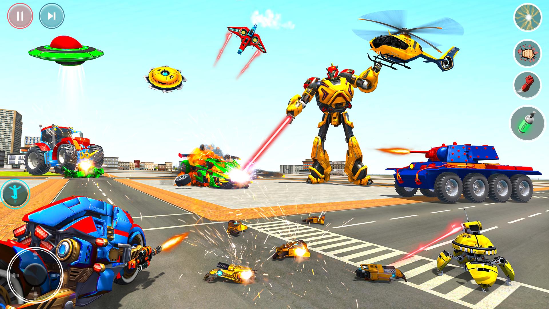 क्या आपके पास प्रतिद्वंद्वी रोबोटों पर हमला करके युद्ध शहर की स्थिति को संभालने की हिम्मत है? रोबोट एक्शन गेम्स में शामिल हों और रोबोट कार ट्रांसफ़ॉर्म लड़ाई में लड़ें और रोबोट कार ट्रांसफ़ॉर्म: रोबोट वॉर के रोबोट हीरो बनें। कार रोबोट में जो उड़ने वाले बाघ रोबोट में बदल सकता है और अपने परिवर्तन कौशल से लड़कर दुश्मन रोबोट पर हमला कर सकता है। आपका काम रोबोट बाइक चलाना और रोबोट बाइक ट्रांसफ़ॉर्म गेम्स और मल्टी ट्रांसफ़ॉर्म गेम्स में फ्लाइंग हीरो रोबोट के रूप में आधुनिक शहर को बचाना है।