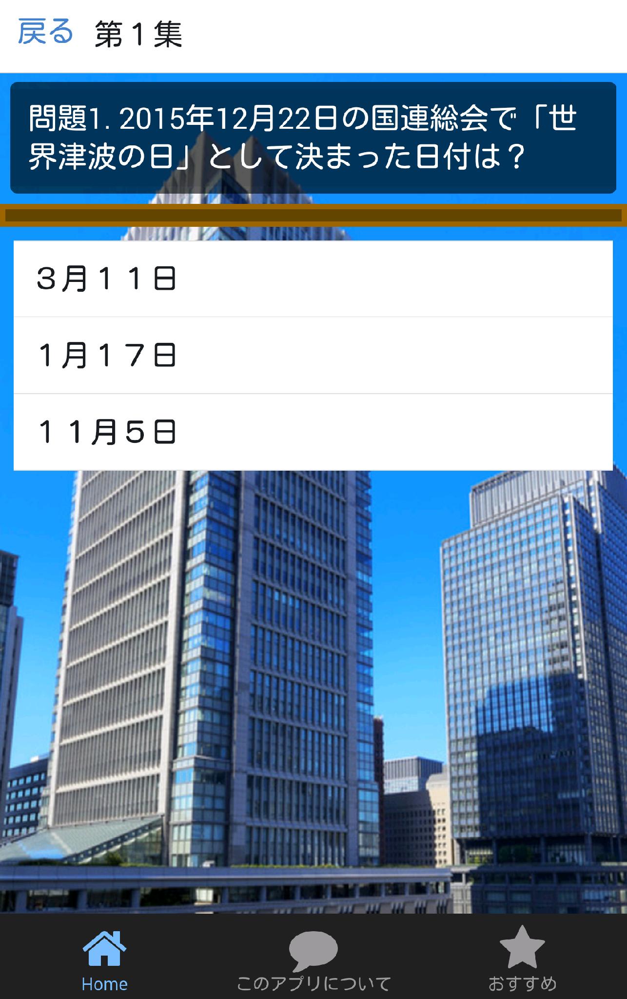 このアプリは2016年、年初における最新の時事に関するクイズです。