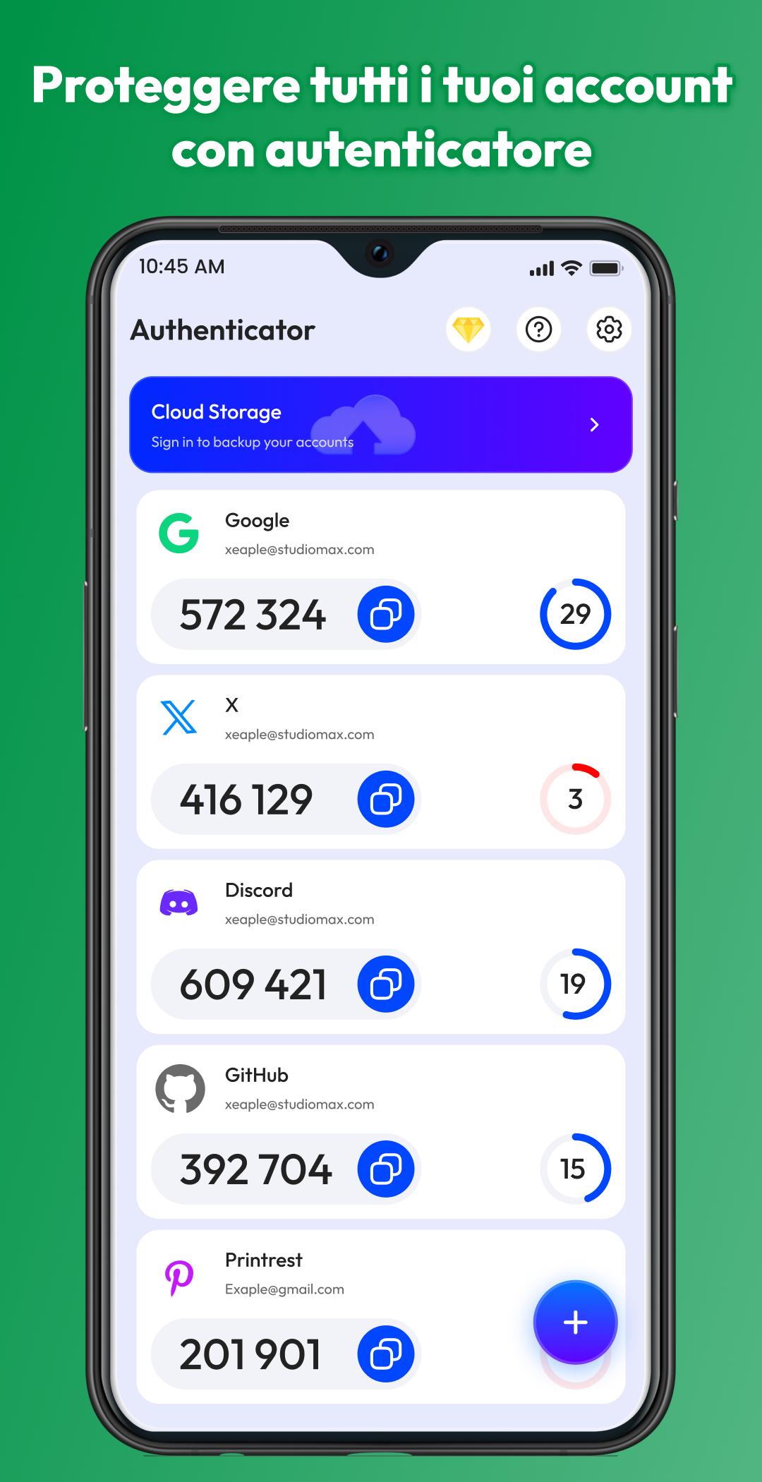 ✅ Supporto per verifica in 2 passaggi su più account.