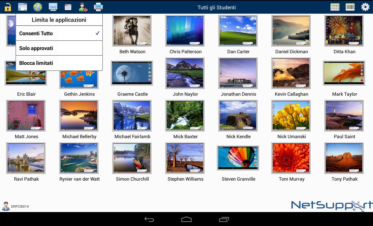 Sorvegliate l’uso delle applicazioni da parte dell’intera classe. Controllate l’utilizzazione delle applicazioni usando gli elenchi delle applicazioni ‘approvate’ o ‘limitate’ definiti nella vostra console Tutor NetSupport principale.
