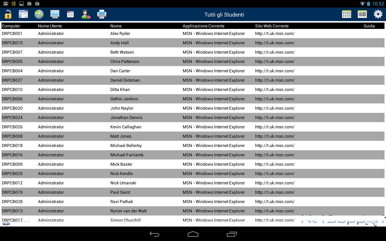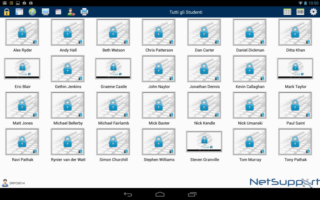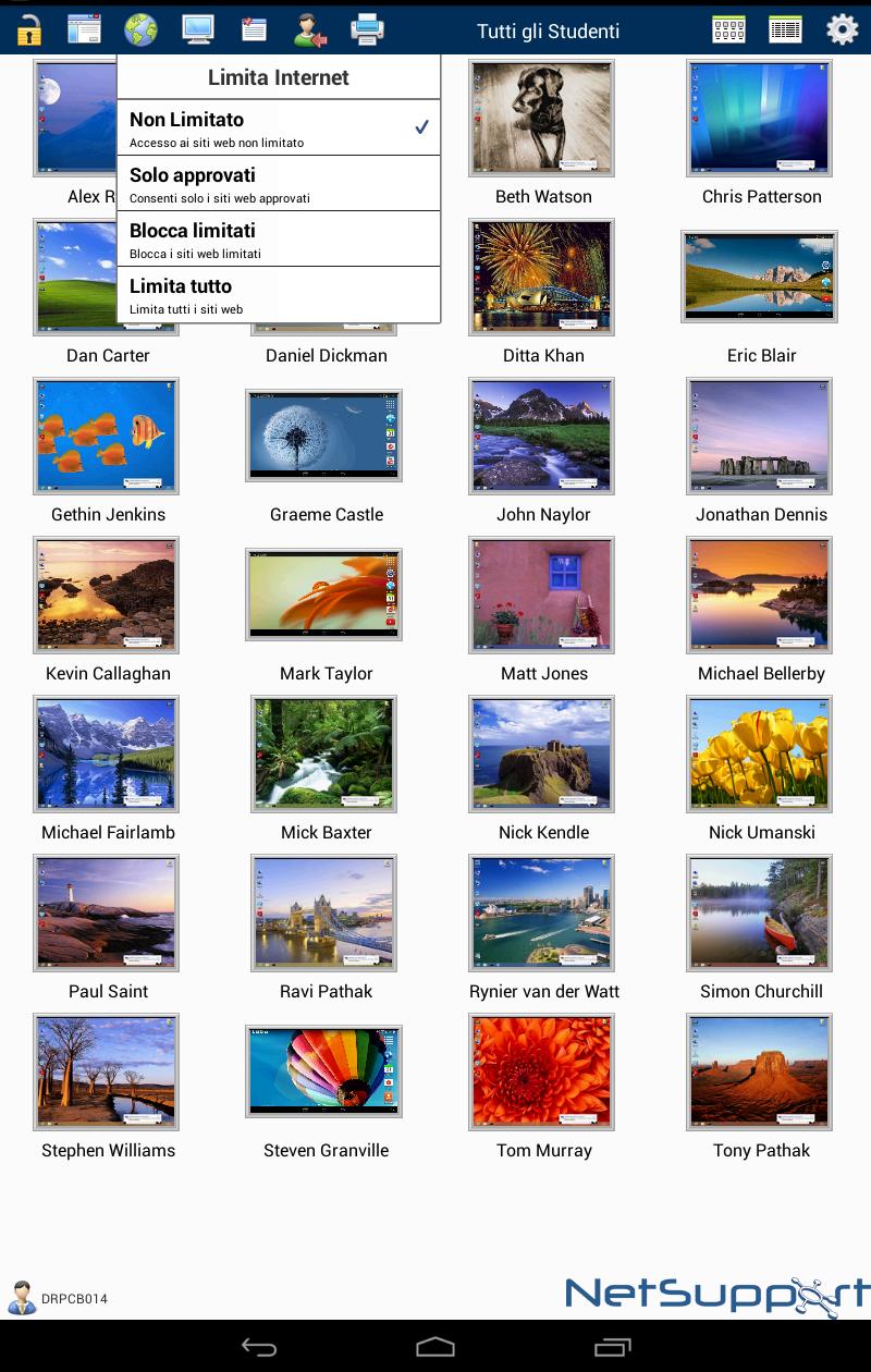 Compatibile con i dispositivi Android e smartphone, una volta associato alla vostra console Tutor di desktop NetSupport, il Tutor Assistant vi aiuterà a mantenere il controllo ed a sorvegliare tutte le workstation degli studenti.