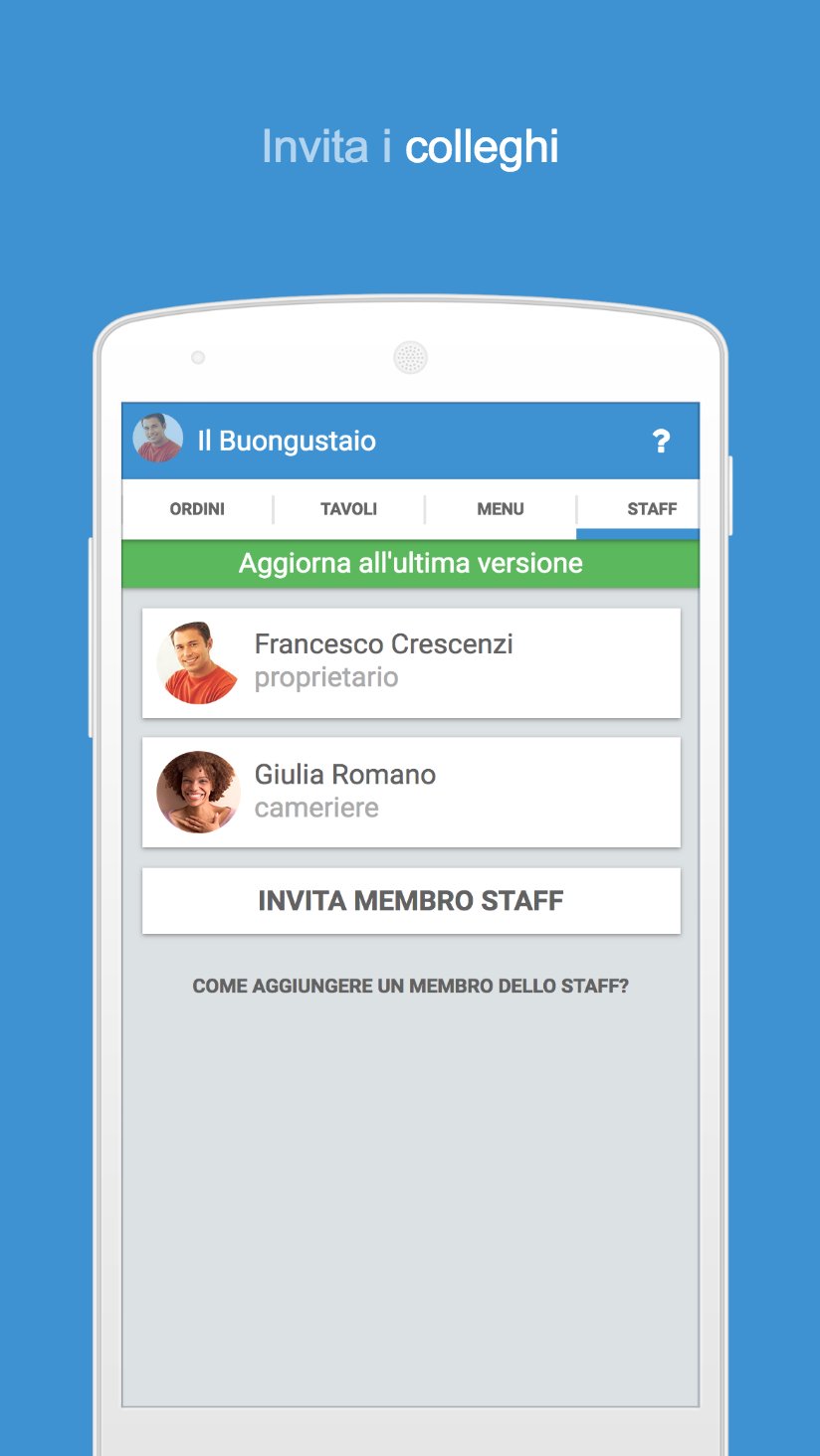 Invita i colleghi ad usare Waiterio ed ordini e menu sono automaticamente sincronizzati. Altro che lavoro di squadra.