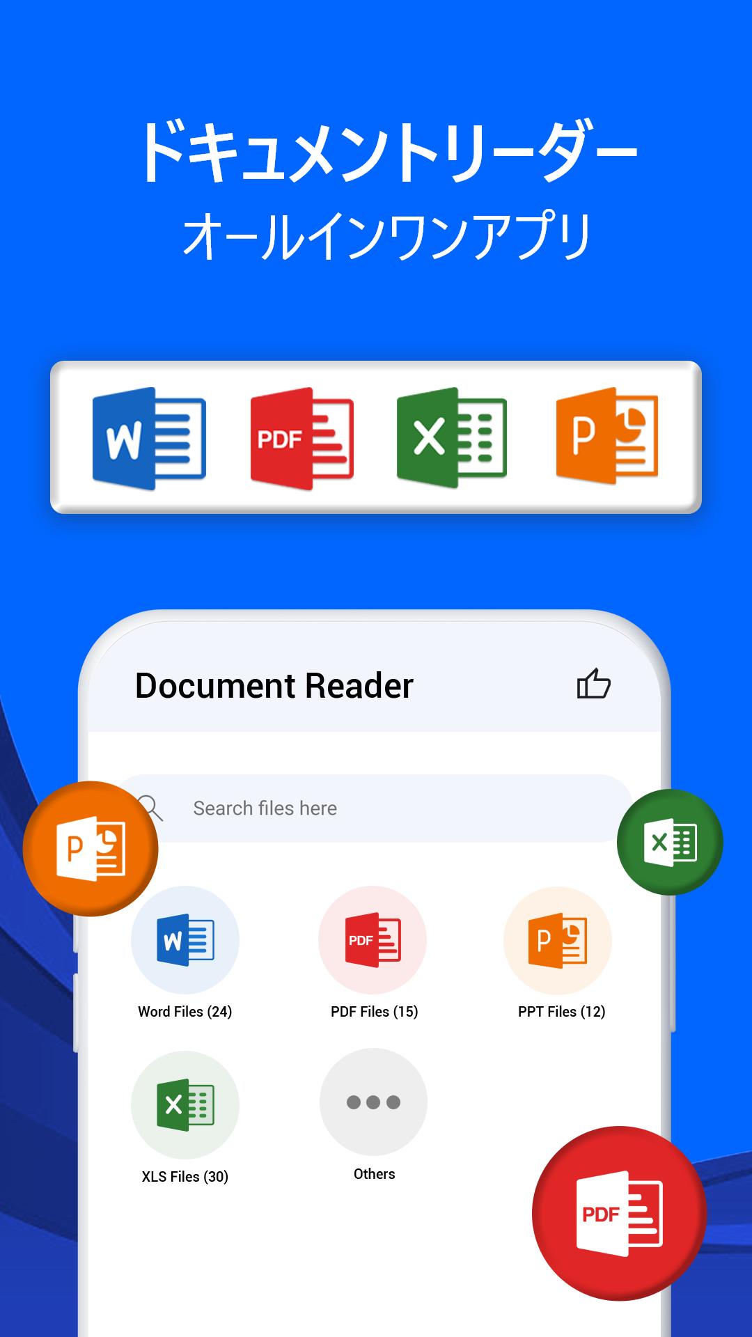 ドキュメント リーダー - オフィス アプリは、PDF、PPT、XLS などのすべての Word ドキュメントを管理します。すべてのドキュメント リーダー - ドキュメント ビューアー (Docx ビューアー) を使用すると、Word、Excel、PowerPoint、PDF ファイルなど、あらゆる種類のドキュメント ファイルを外出先で読むことができます。スマート ファイル リーダー & ファイル マネージャー アプリは、すべてのドキュメント ファイルを簡単に管理します。